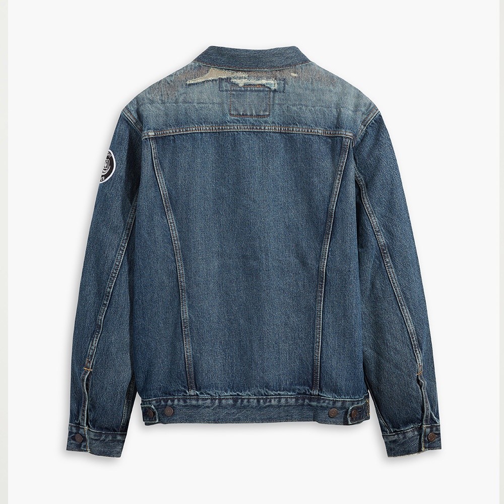 Levis 男女同款 牛仔外套 / 精工磨損補丁細節 / 寬鬆休閒版型 / 復古水洗 熱賣單品 77380-0044