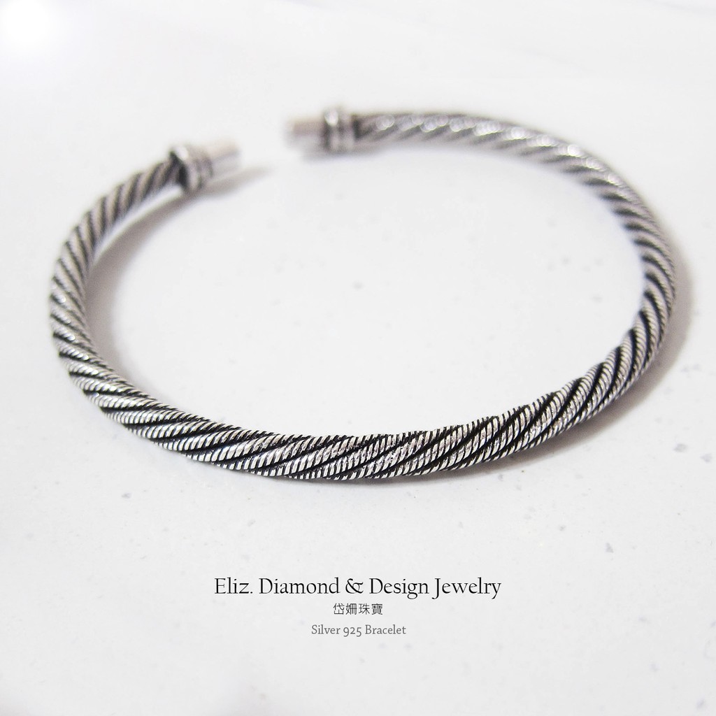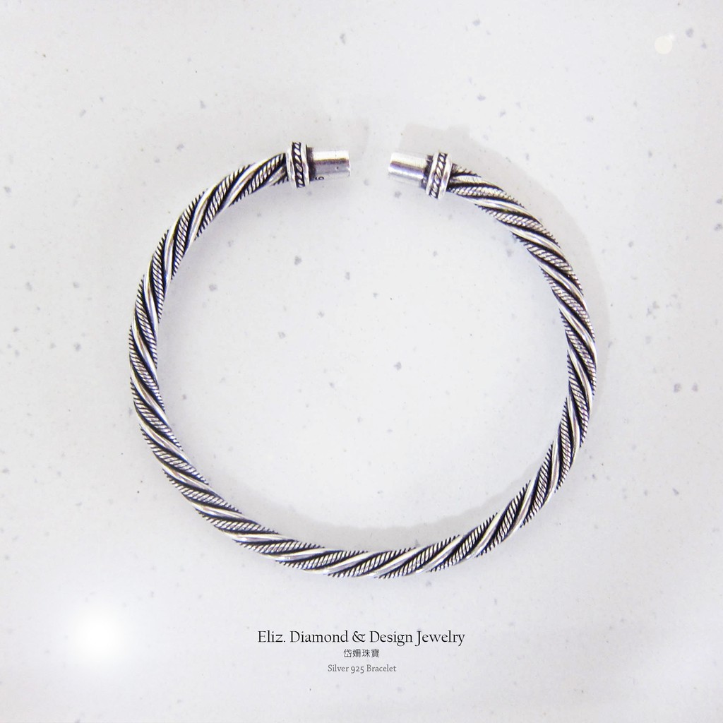 【岱姍珠寶】 S925 銀飾 麻花款手環 手鐲 C型環 C字環 C手鐲 C手環 Open Bangle 首飾