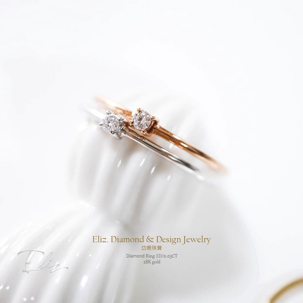 【岱姍珠寶】 天然鑽石 18K 鑽石戒指 0.03CT 3分 戒指 四爪戒指 小資女的鑽戒