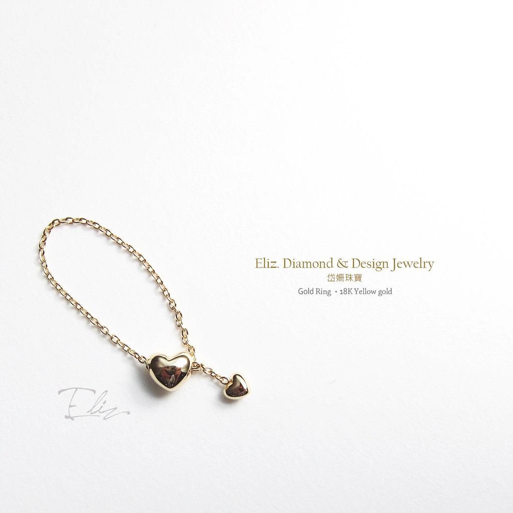【岱姍珠寶】 18K 心型鍊戒 玫瑰金 白K金 黃K金 戒指 K金戒指 18K戒指 愛心戒指