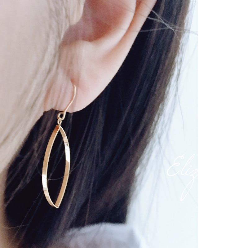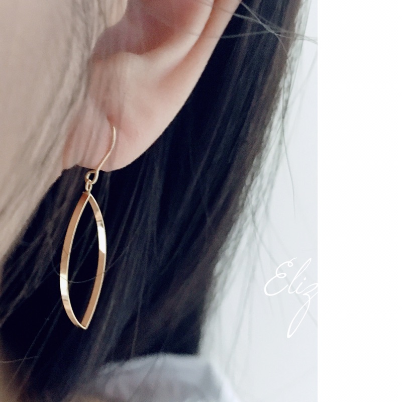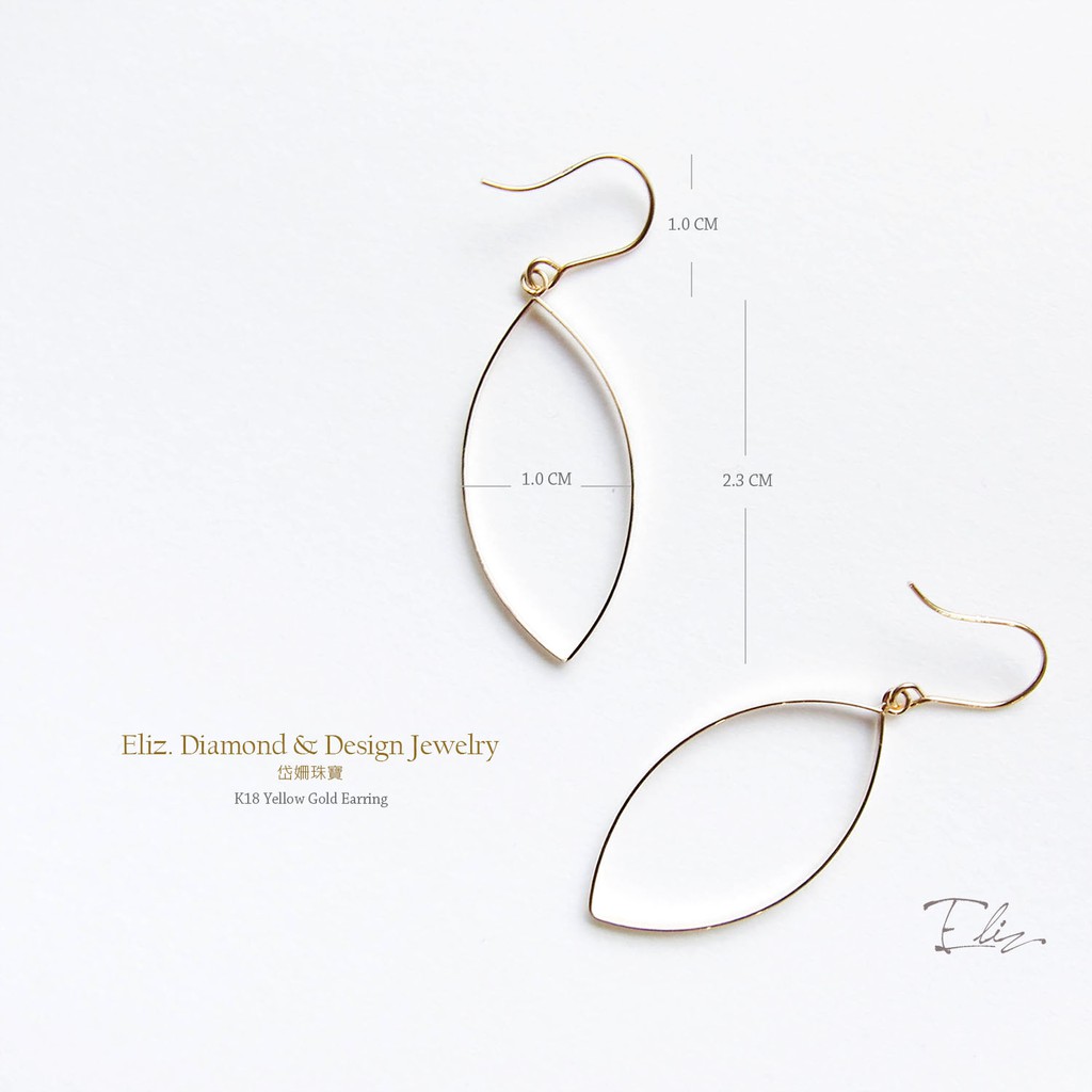 【岱姍珠寶】 18K 黃K金 欖尖型 簍空耳環 馬眼耳環 耳勾 K金耳環
