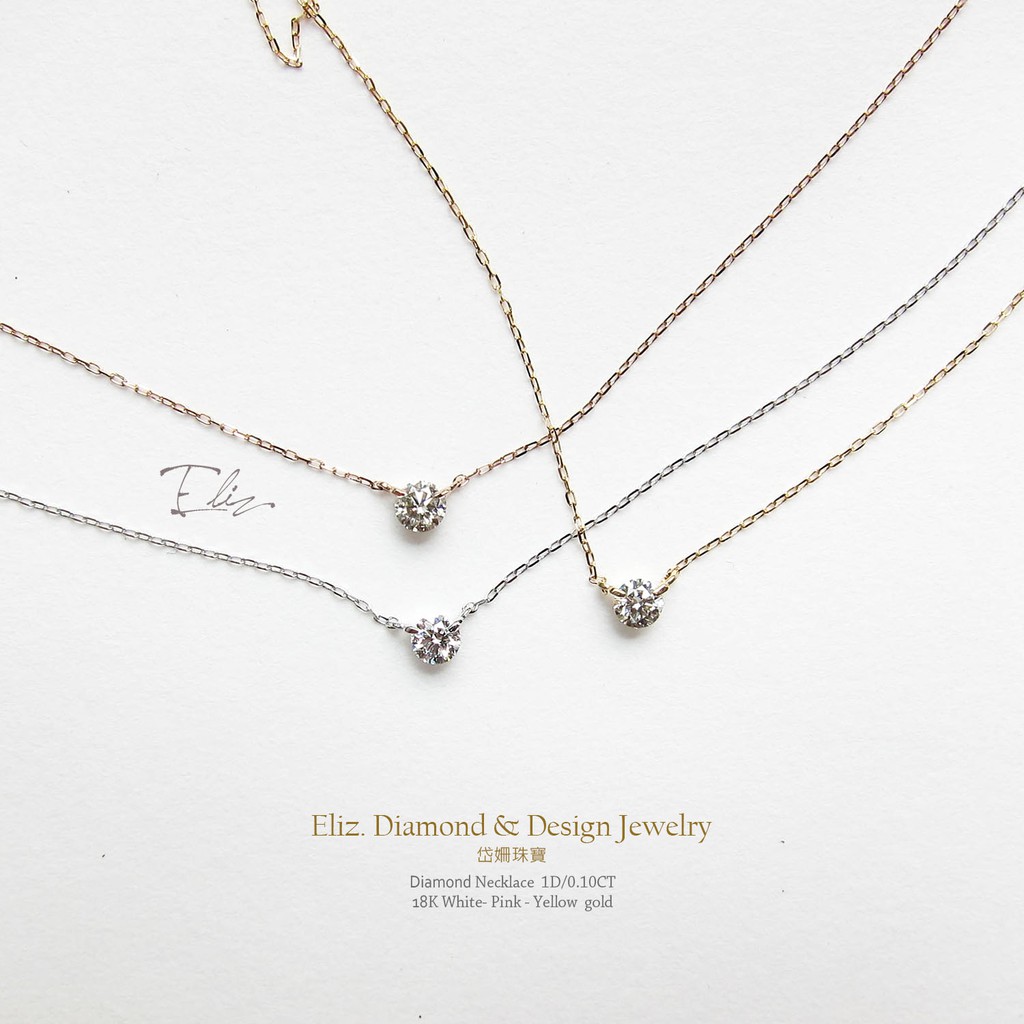 【岱姍珠寶】 18K 兩爪 單鑽 10分 鑽石項鍊 鑽石墜鍊 白K金 黃K金 玫瑰金