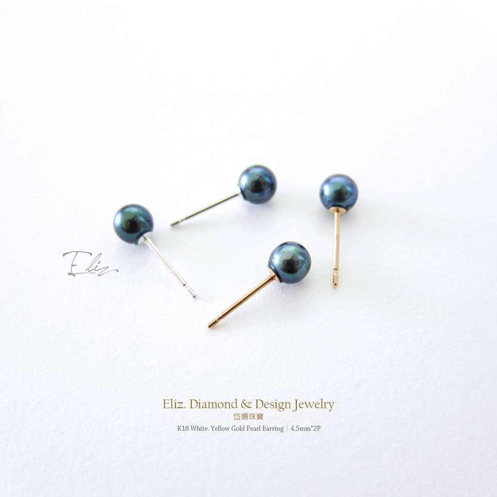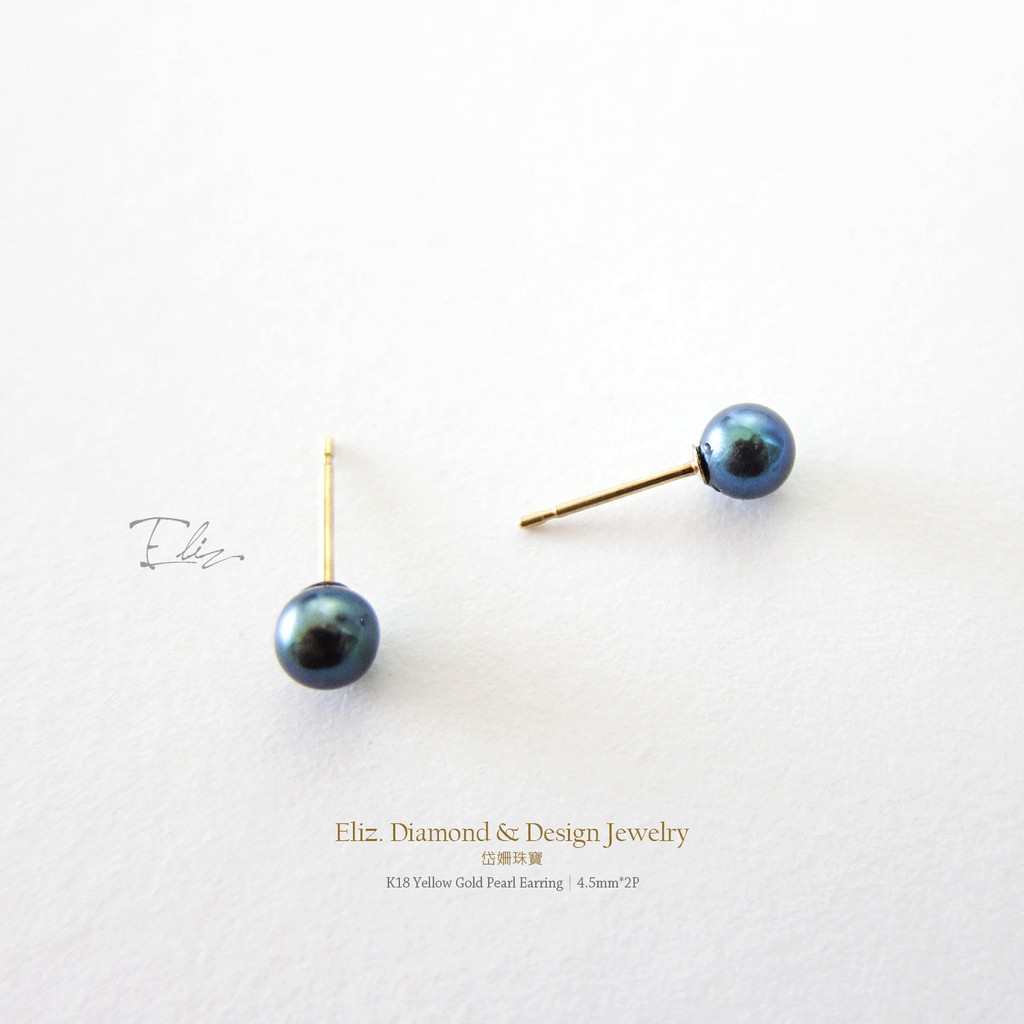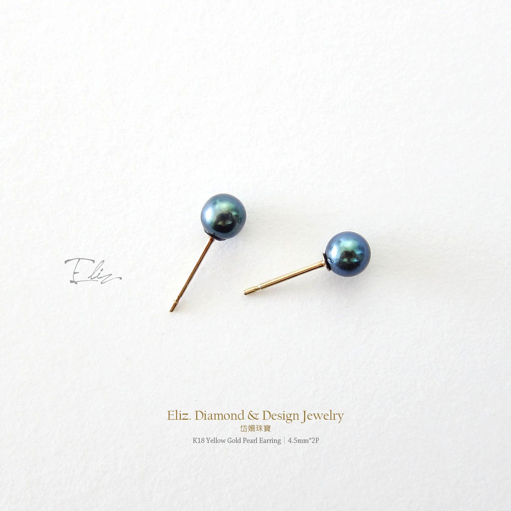 【岱姍珠寶】 18K金 天然珍珠耳環 黑綠色珍珠 珍珠耳環