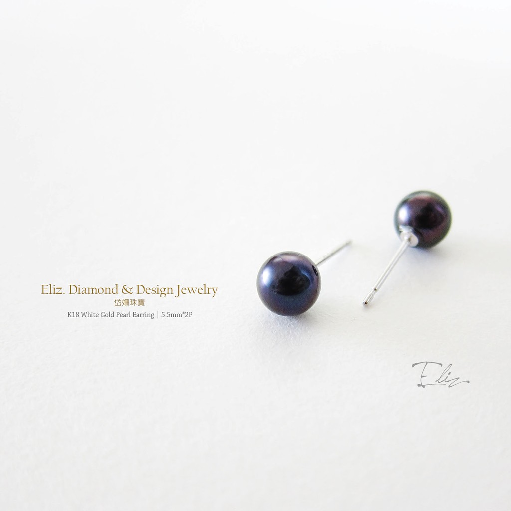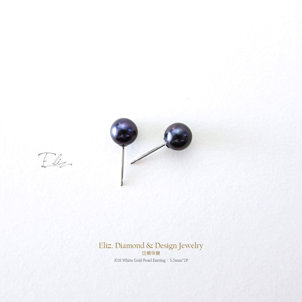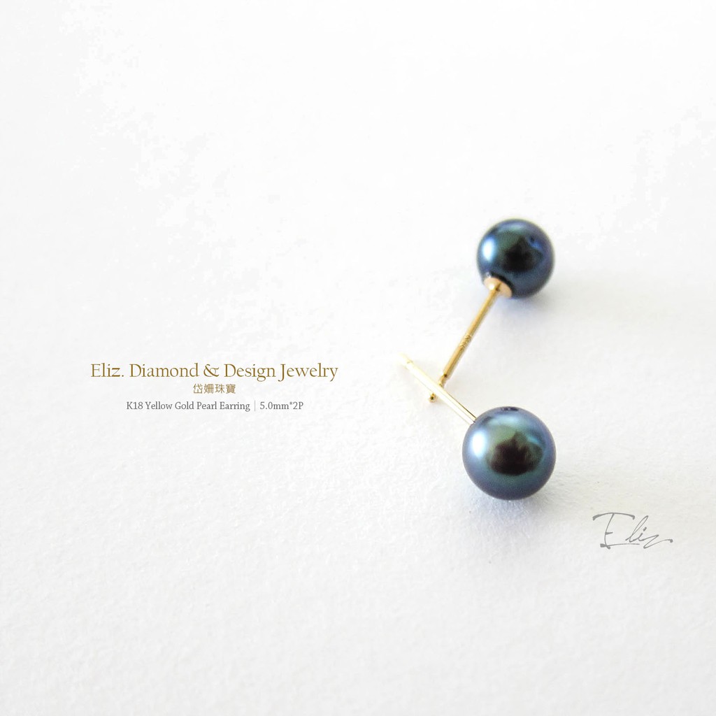【岱姍珠寶】 18K金 天然珍珠耳環 黑綠色珍珠 珍珠耳環