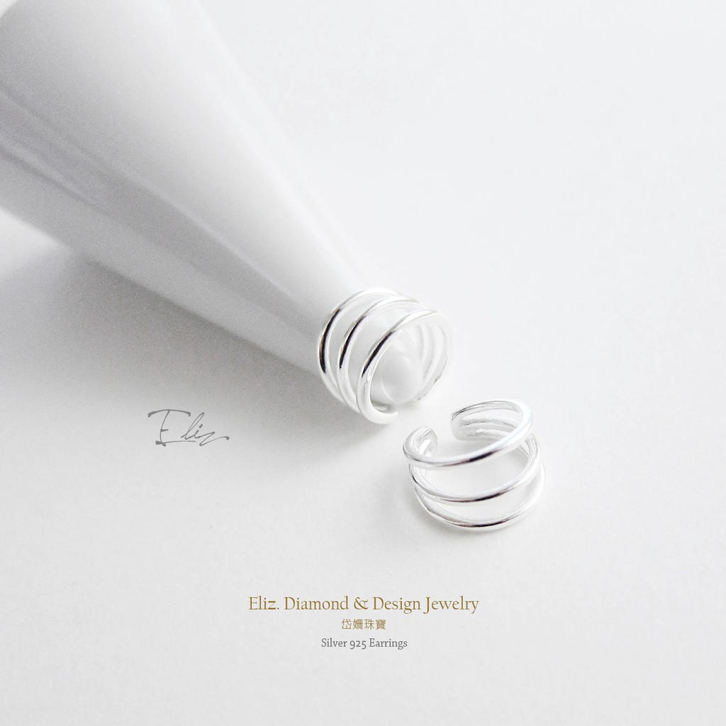 【岱姍珠寶】 S925 耳飾 三層 簡約線條 耳夾 耳環 耳骨耳環 銀飾耳環 銀飾 夾式耳環