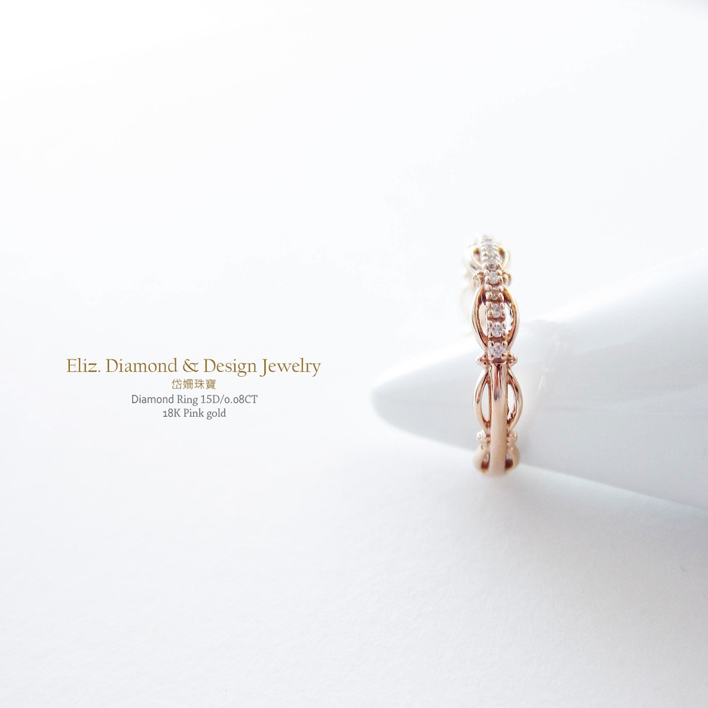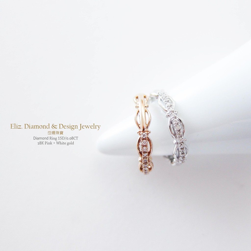 【岱姍珠寶】 18k 蕾絲鑽石戒指 天然鑽石 白k金 玫瑰金
