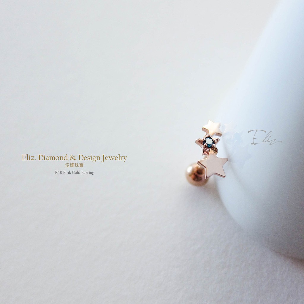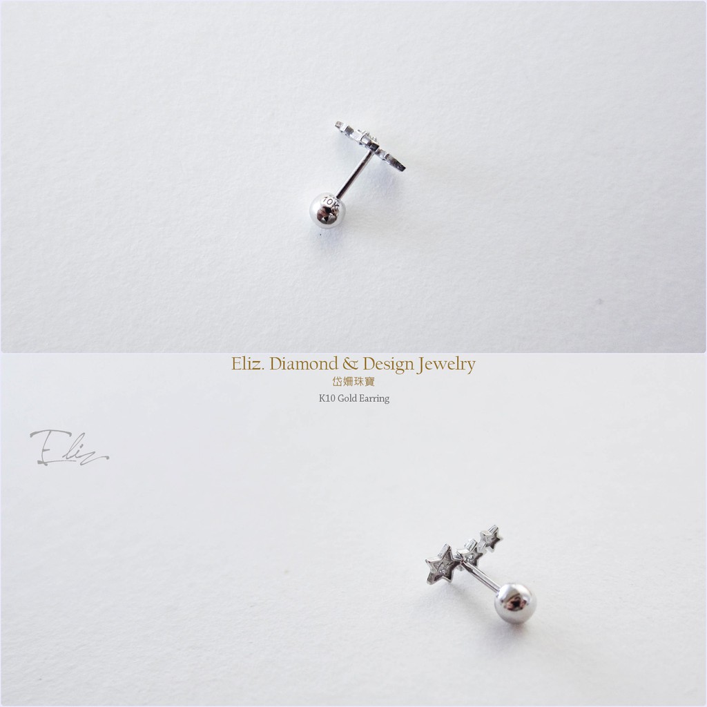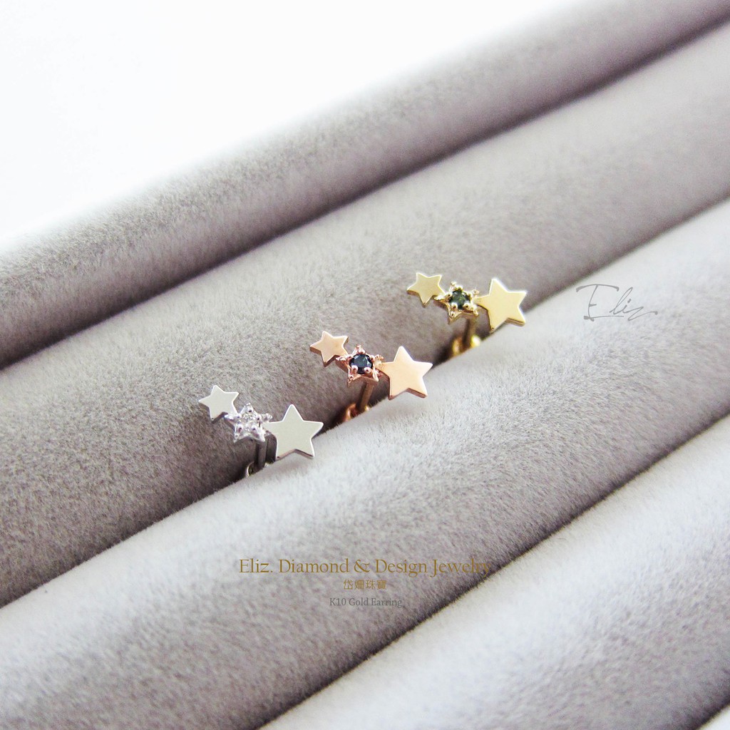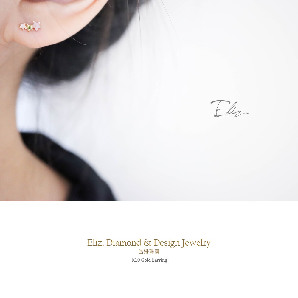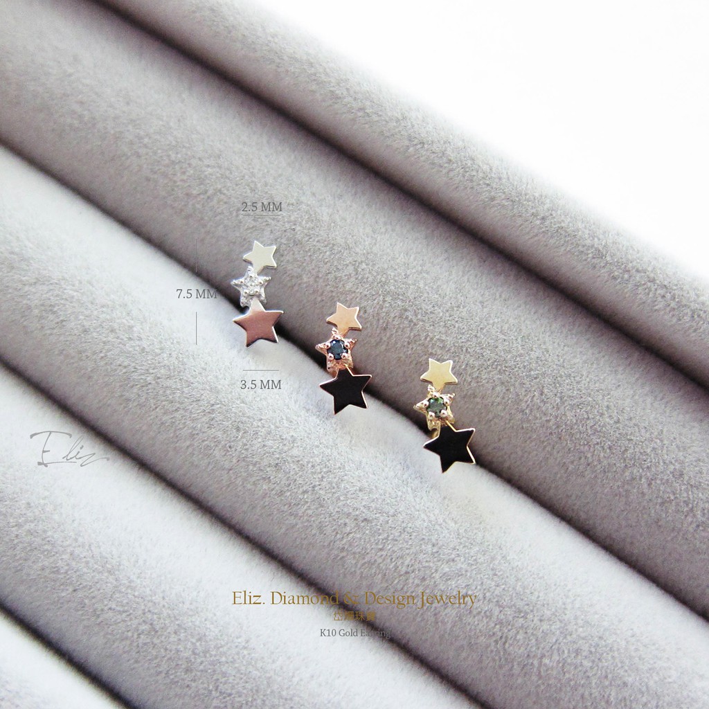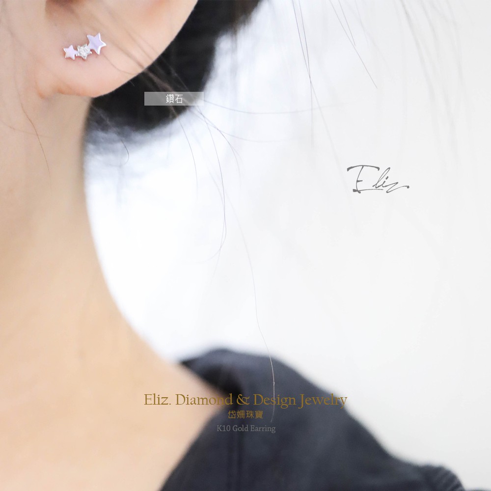 【岱姍珠寶】 10K 星星耳環 半寶石耳環 鑽石耳環 鎖珠耳環 K金耳環 白K金 玫瑰金 黃K金