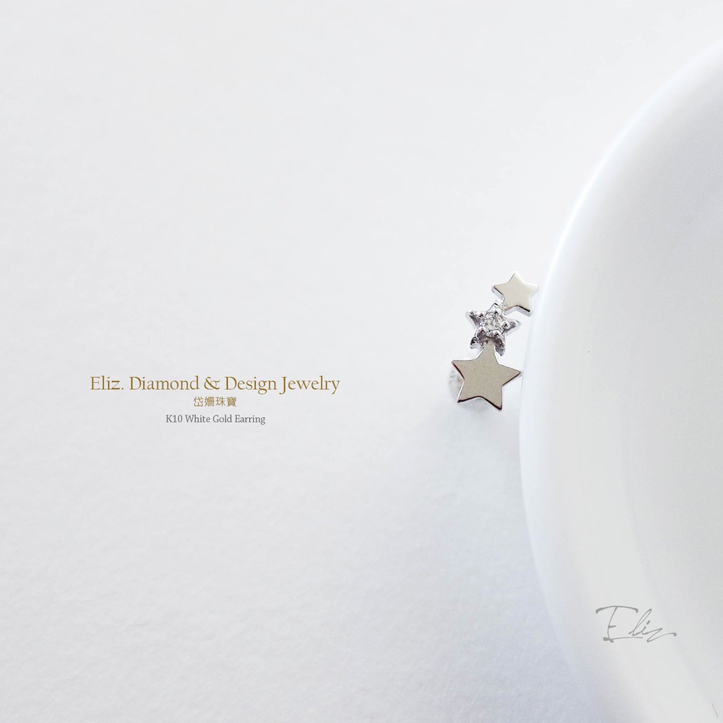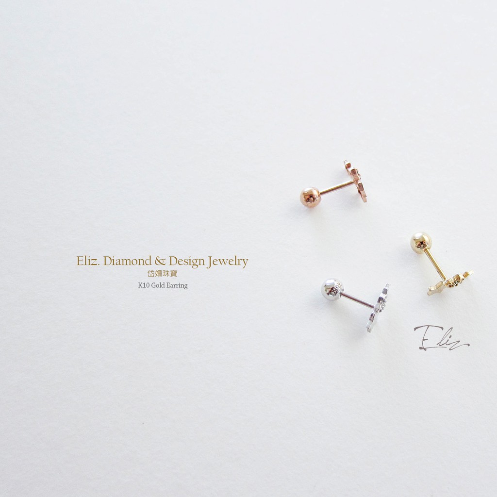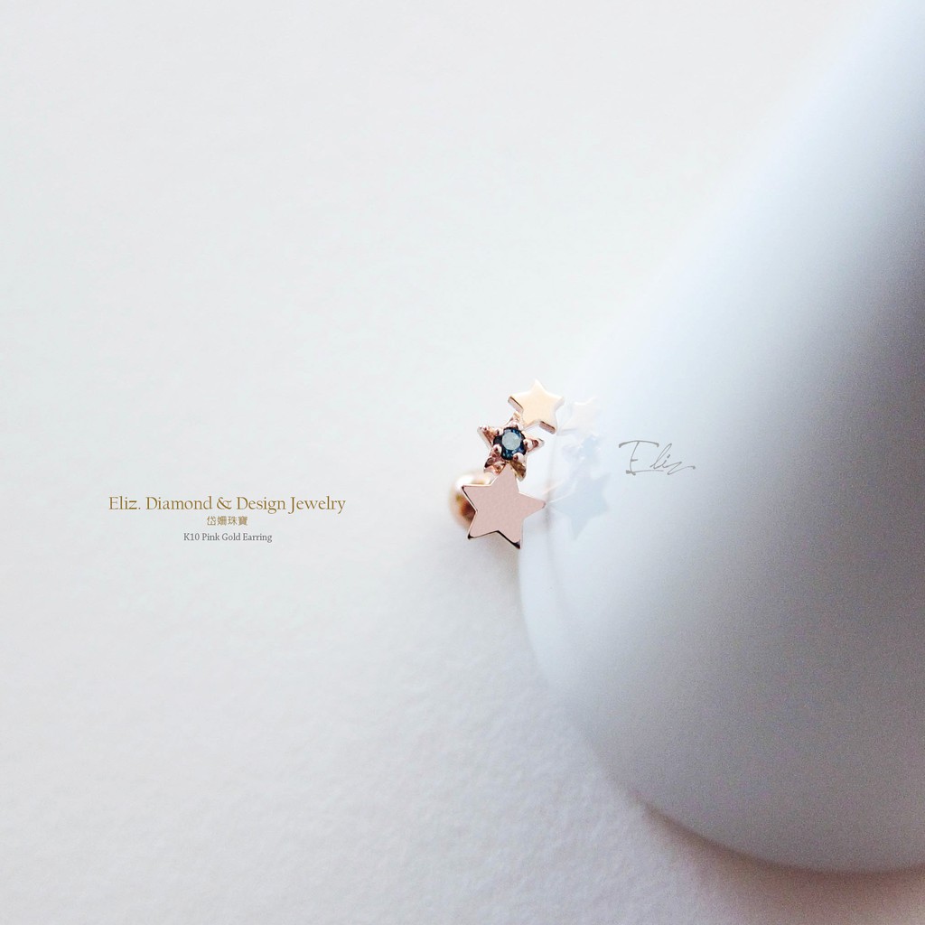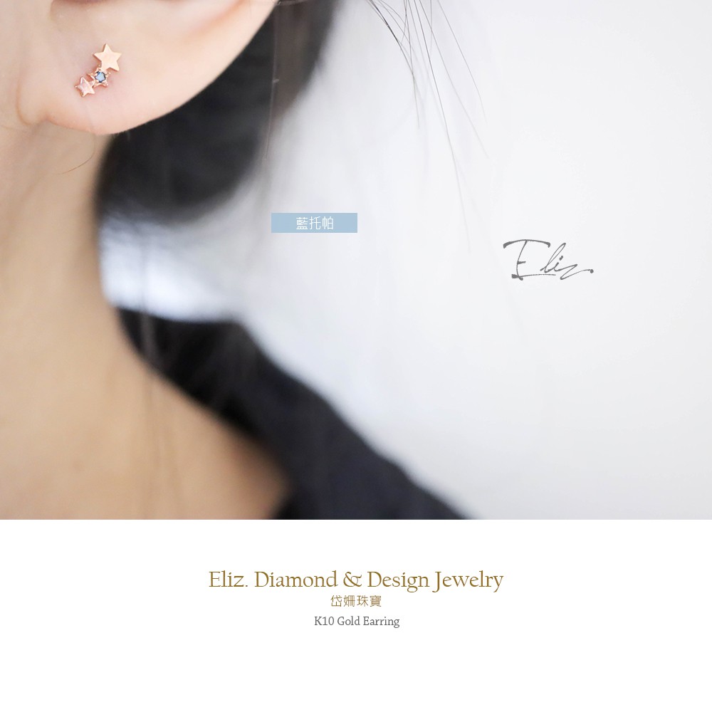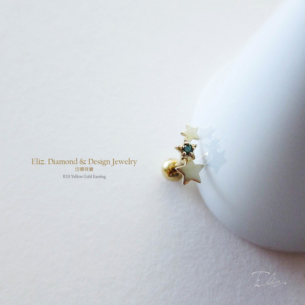 【岱姍珠寶】 10K 星星耳環 半寶石耳環 鑽石耳環 鎖珠耳環 K金耳環 白K金 玫瑰金 黃K金