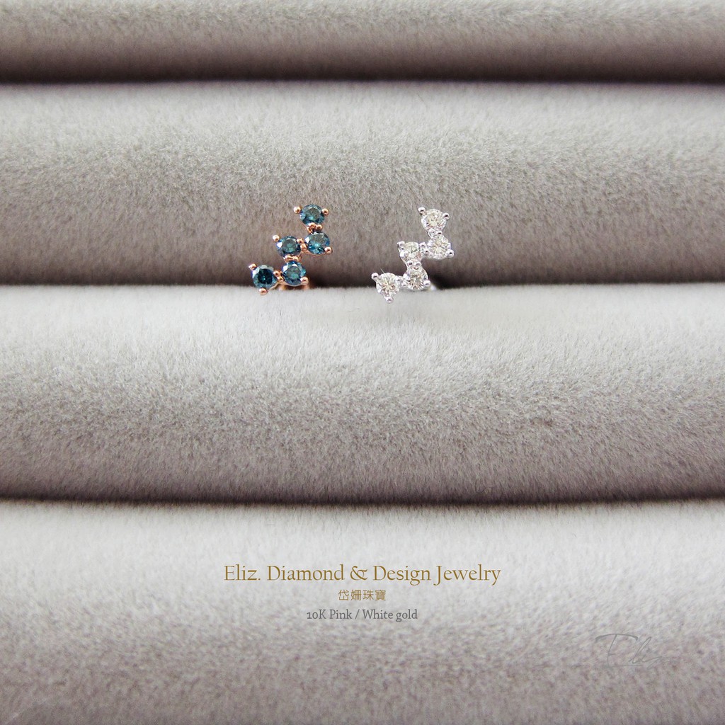 【岱姍珠寶】 10K 波浪型耳環 半寶石耳環 藍拓帕耳環 鎖珠耳環 鎖珠 玫瑰金