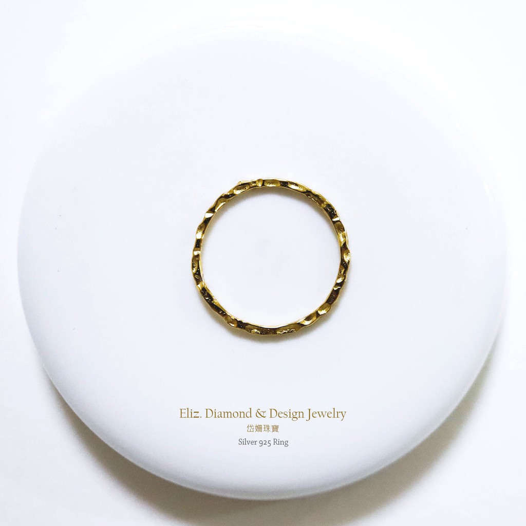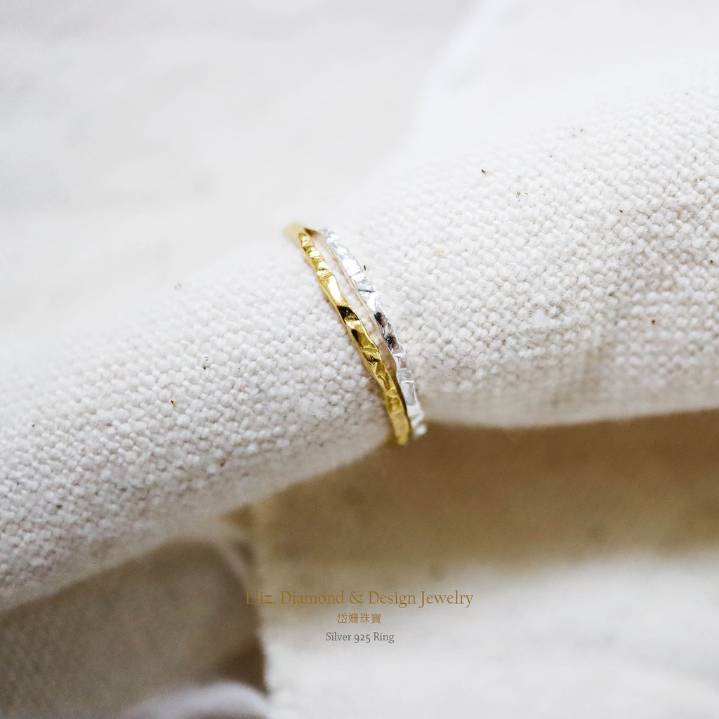 【岱姍珠寶】 S925 極簡約 捶打 小個性 金色 細版線戒 百搭 純銀線戒 純銀 戒指 銀戒指 尾戒 食指戒