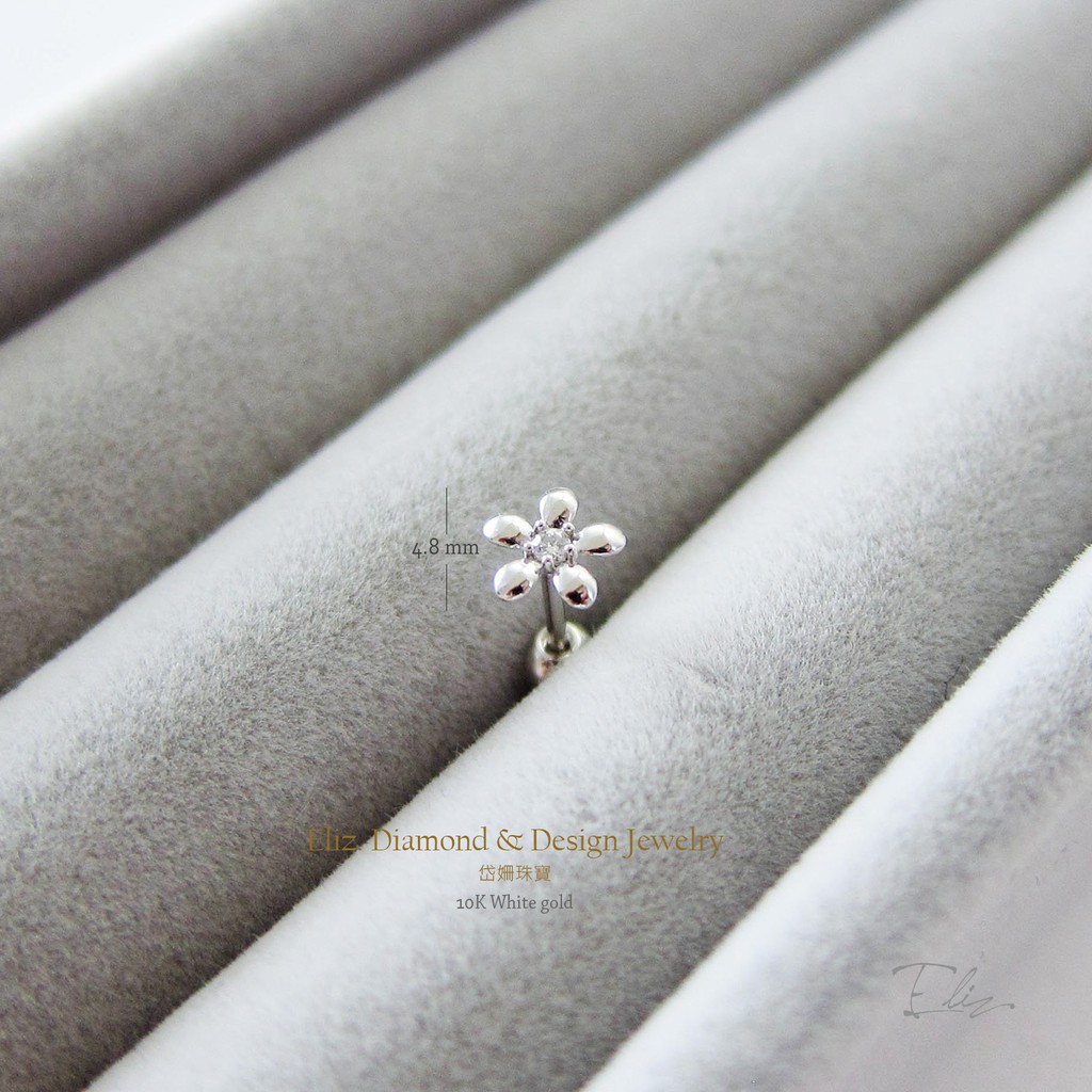 【岱姍珠寶】 10K 鑽石耳環 天然鑽石 小花耳環 花朵耳環 鎖珠耳環 鎖珠