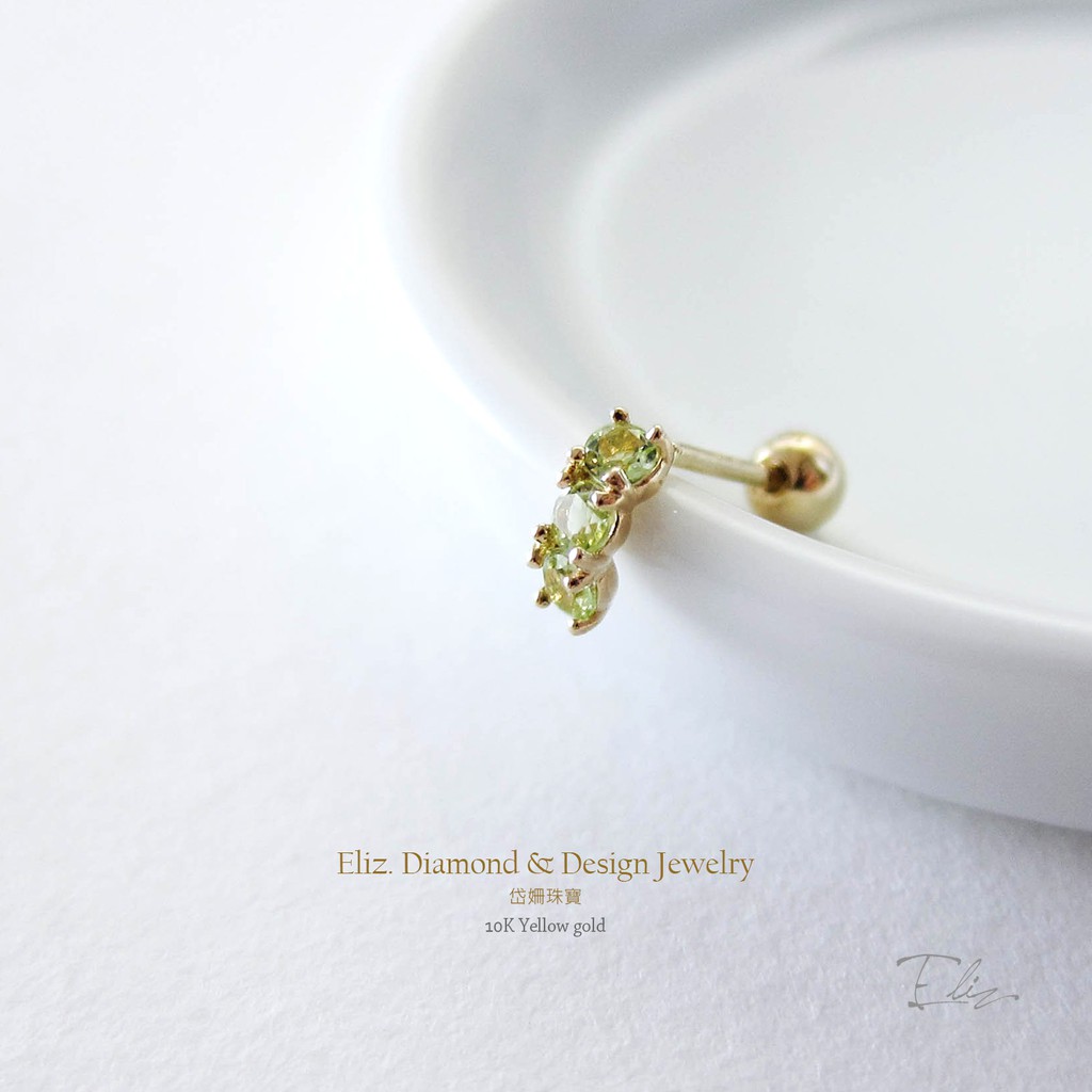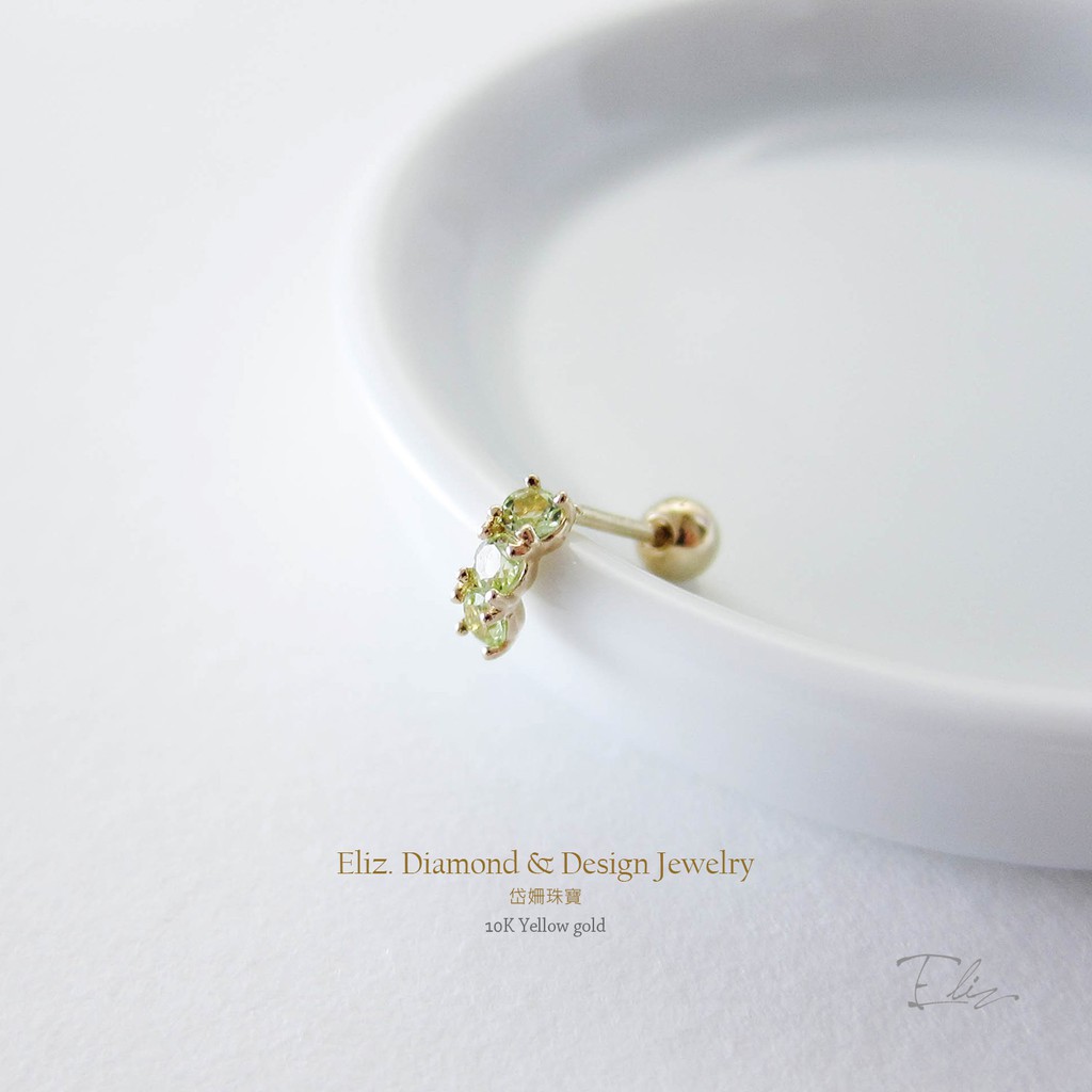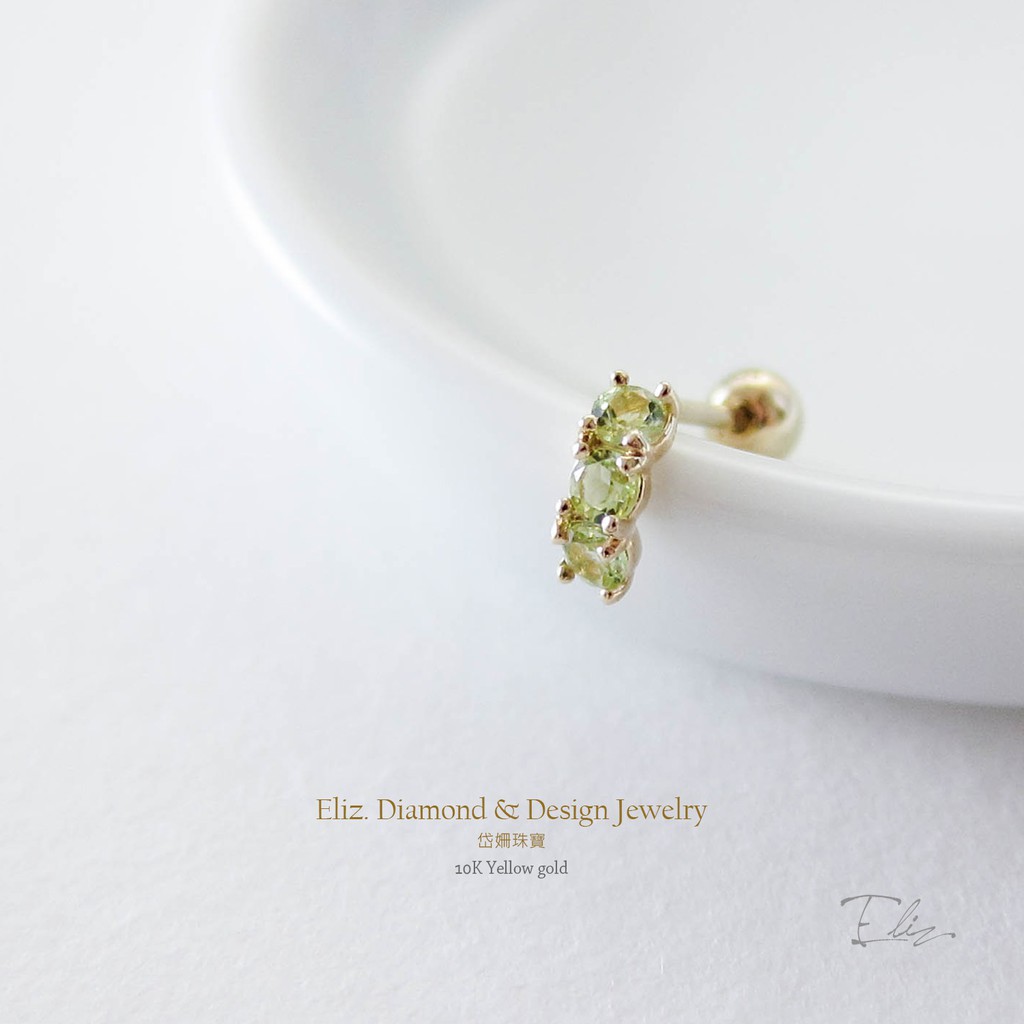 【岱姍珠寶】 10K 月長石耳環 橄欖石耳環 月長石 半寶石耳環 鎖珠耳環 鎖珠 黃K金 白K金