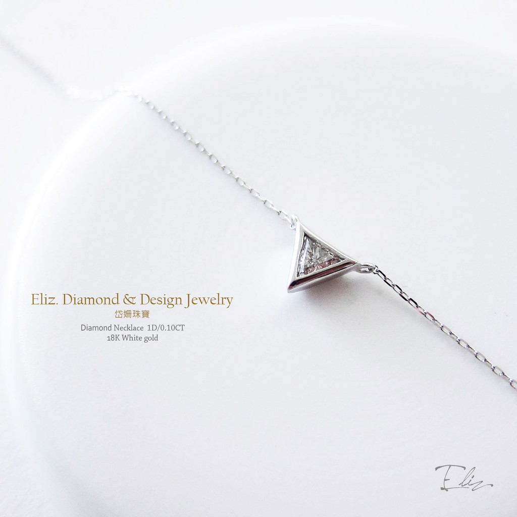 【岱姍珠寶】 18K 天然鑽石 花式切割 鑽石項鍊 白K金項鍊