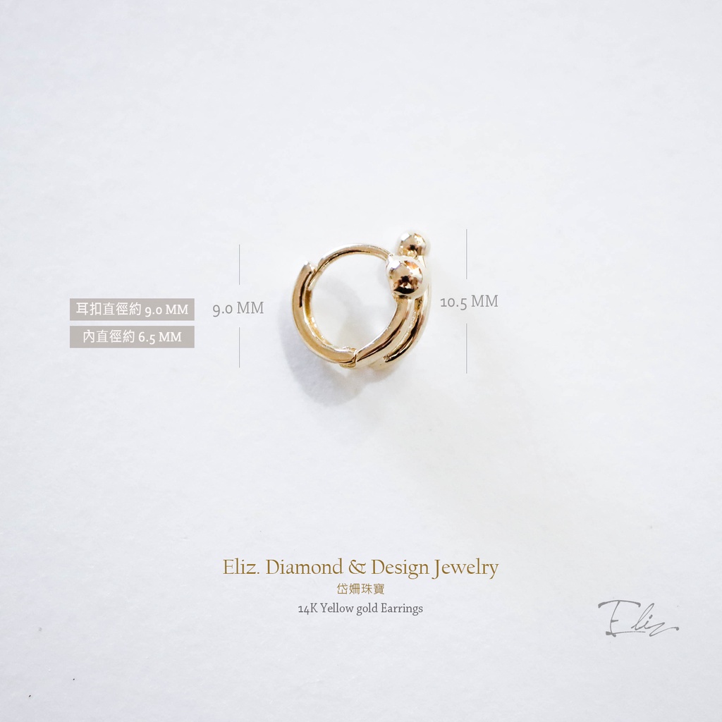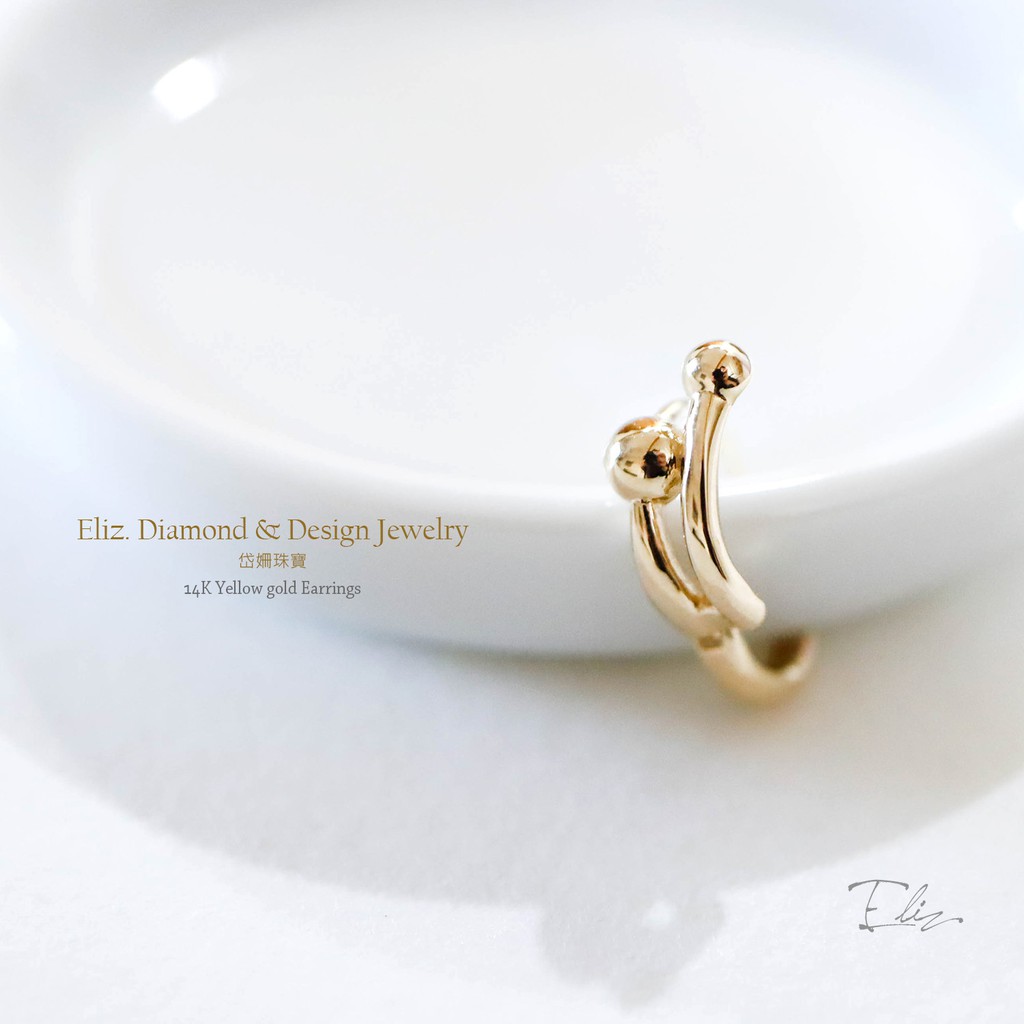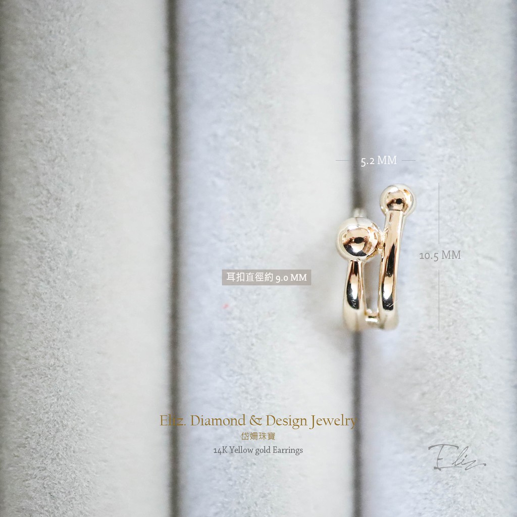 【岱姍珠寶】 14K 黃K金 簡約耳扣 線條圓球耳扣 耳扣 耳環 K金耳扣 K金耳環 耳骨
