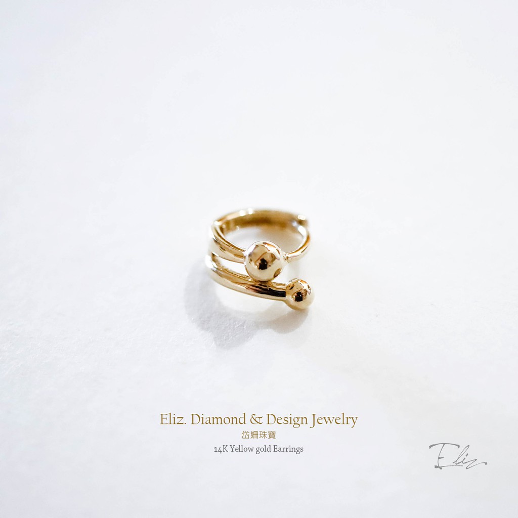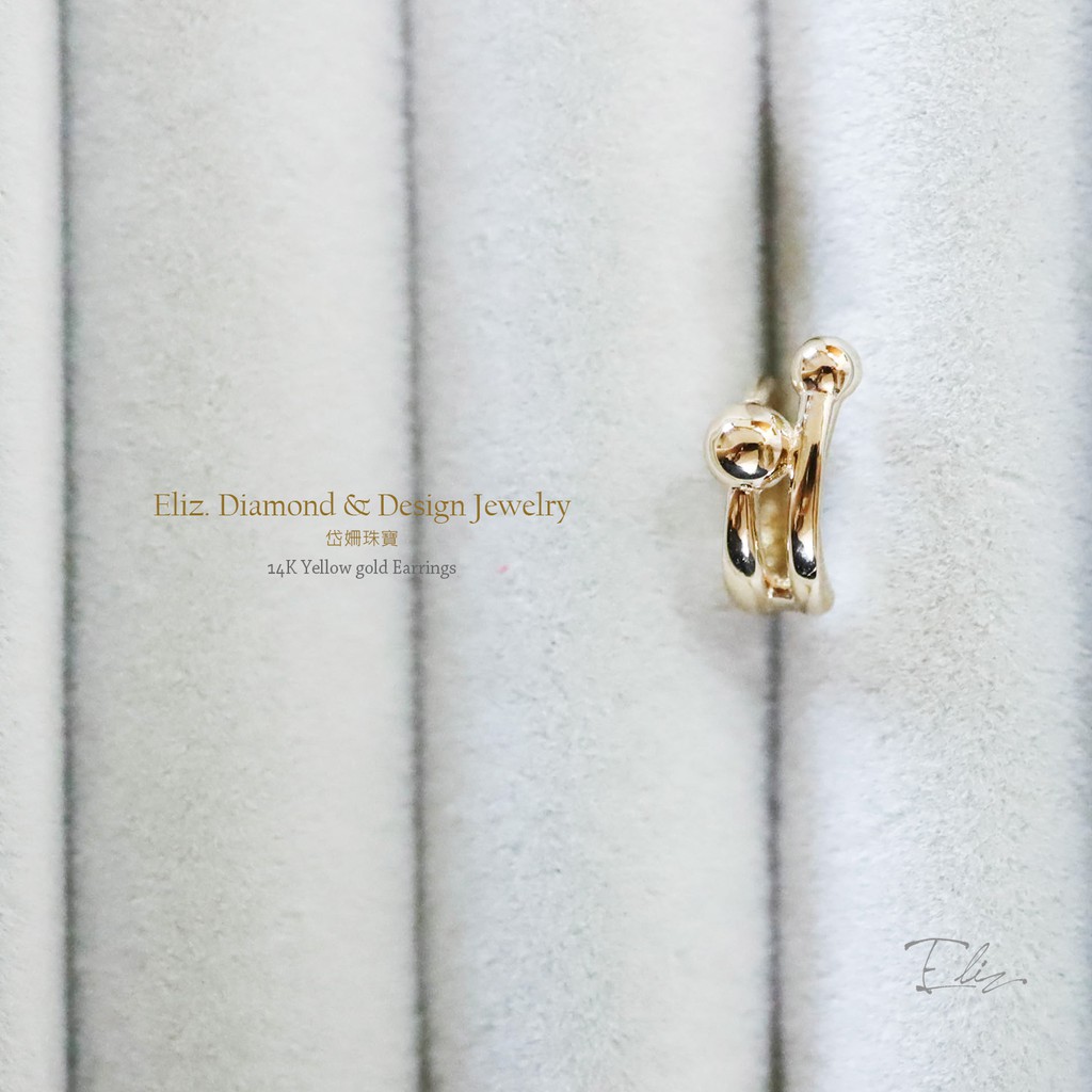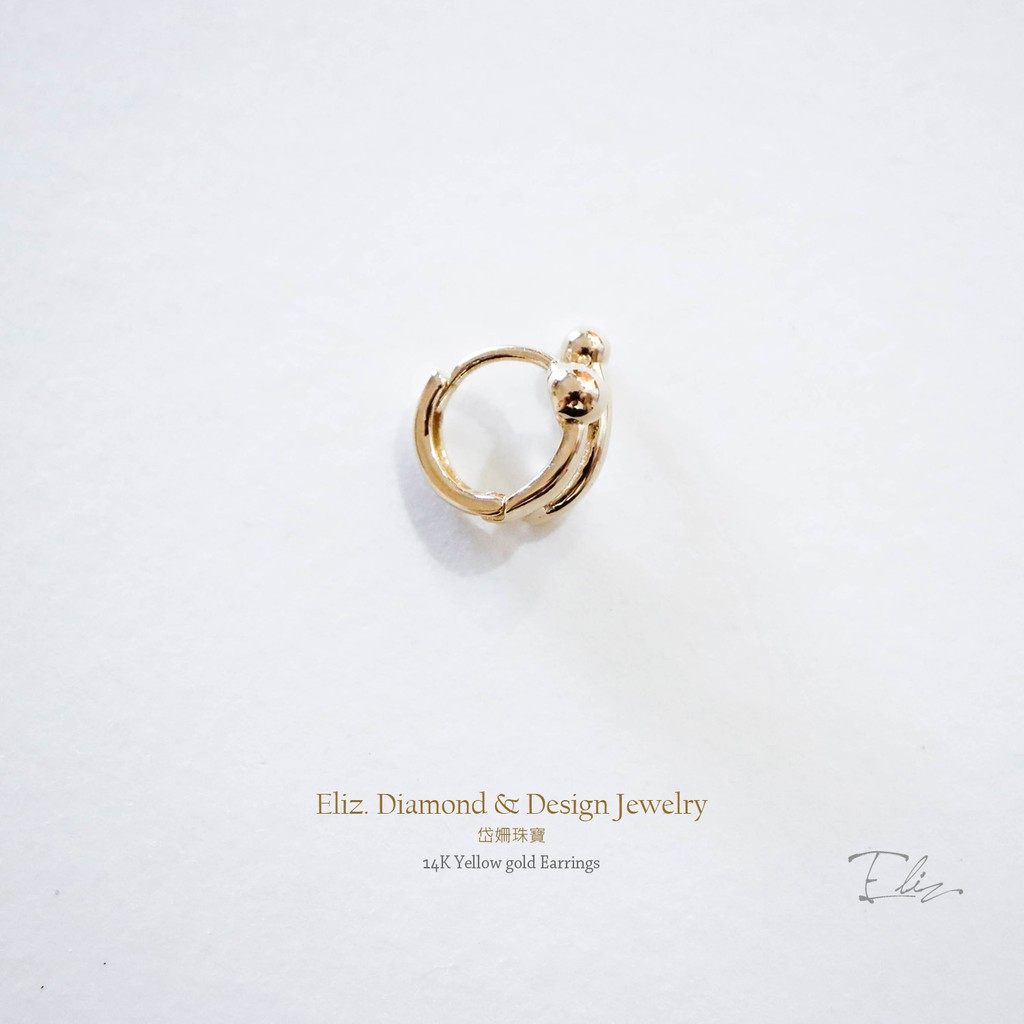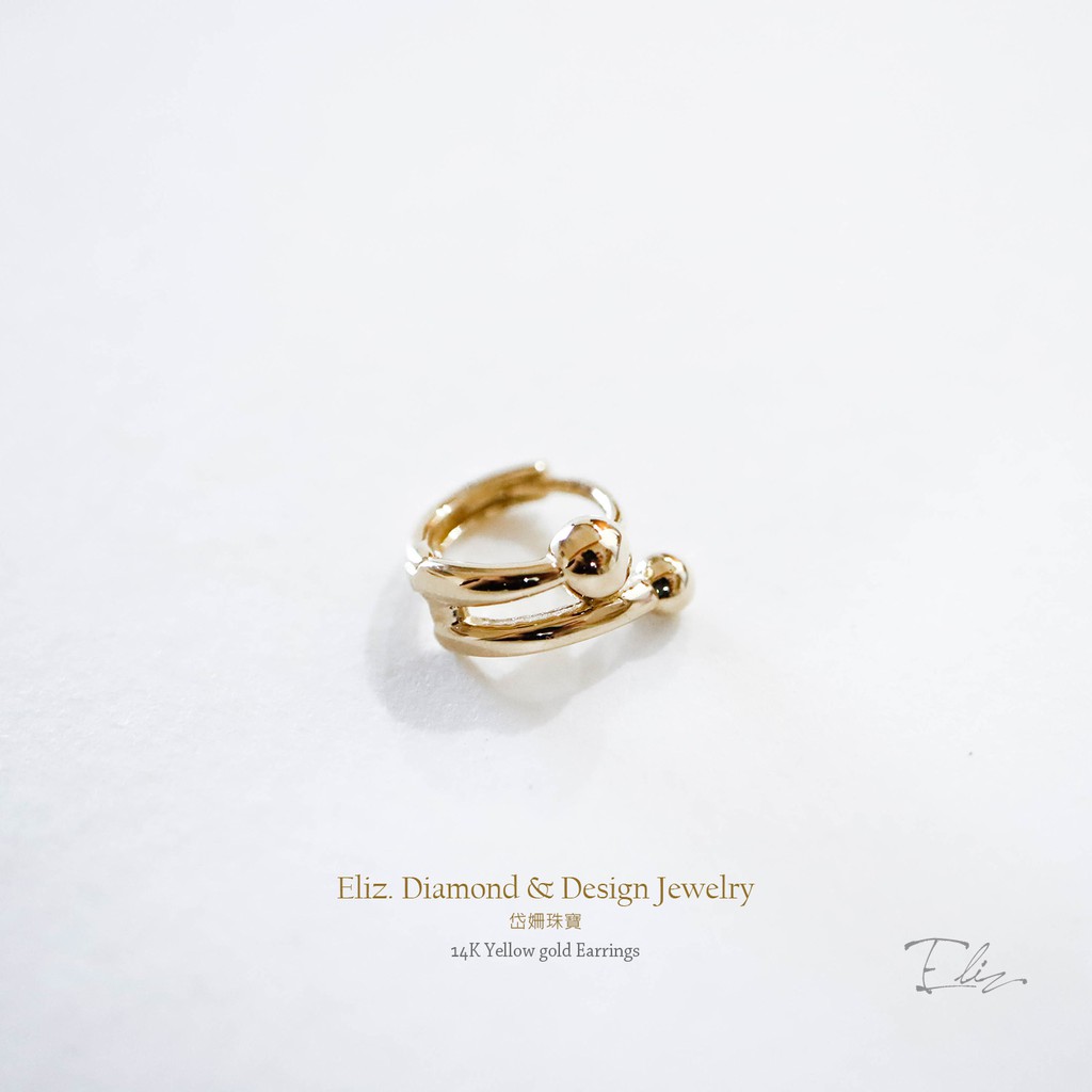【岱姍珠寶】 14K 黃K金 簡約耳扣 線條圓球耳扣 耳扣 耳環 K金耳扣 K金耳環 耳骨