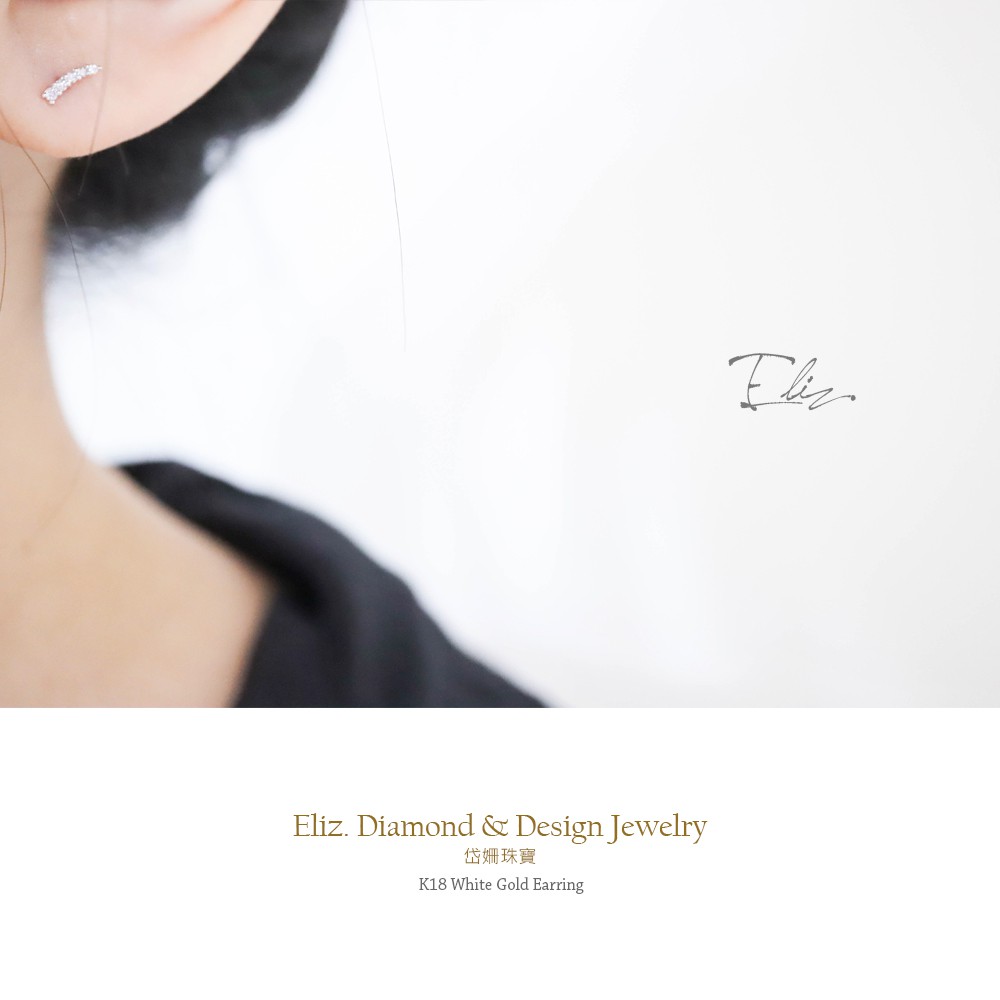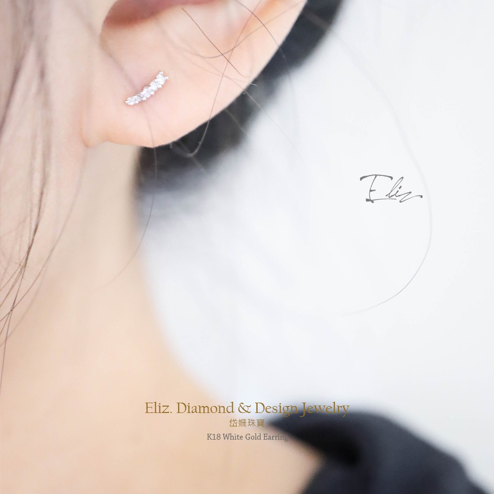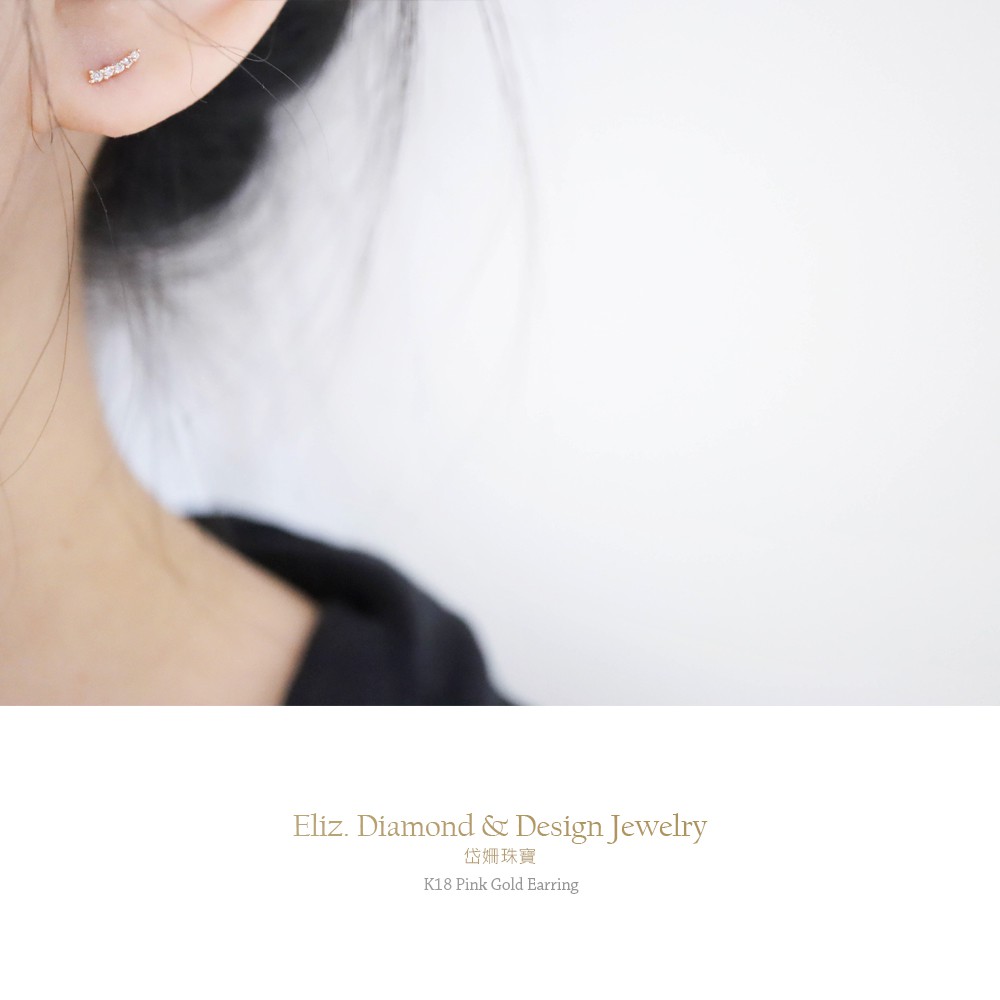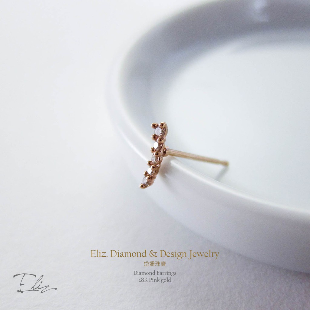 【岱姍珠寶】 18K 簡約 鑽石耳環 閃閃一撇 天然鑽石 耳針