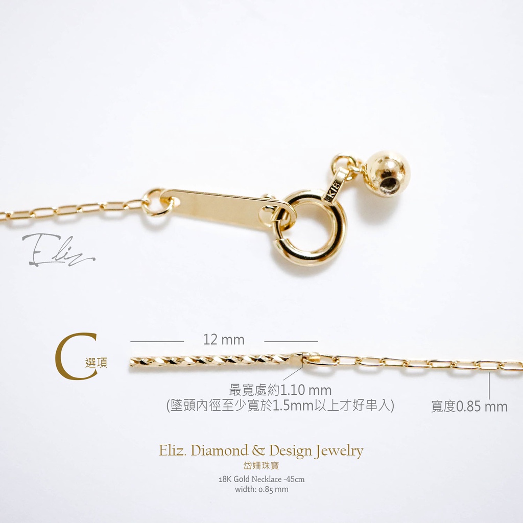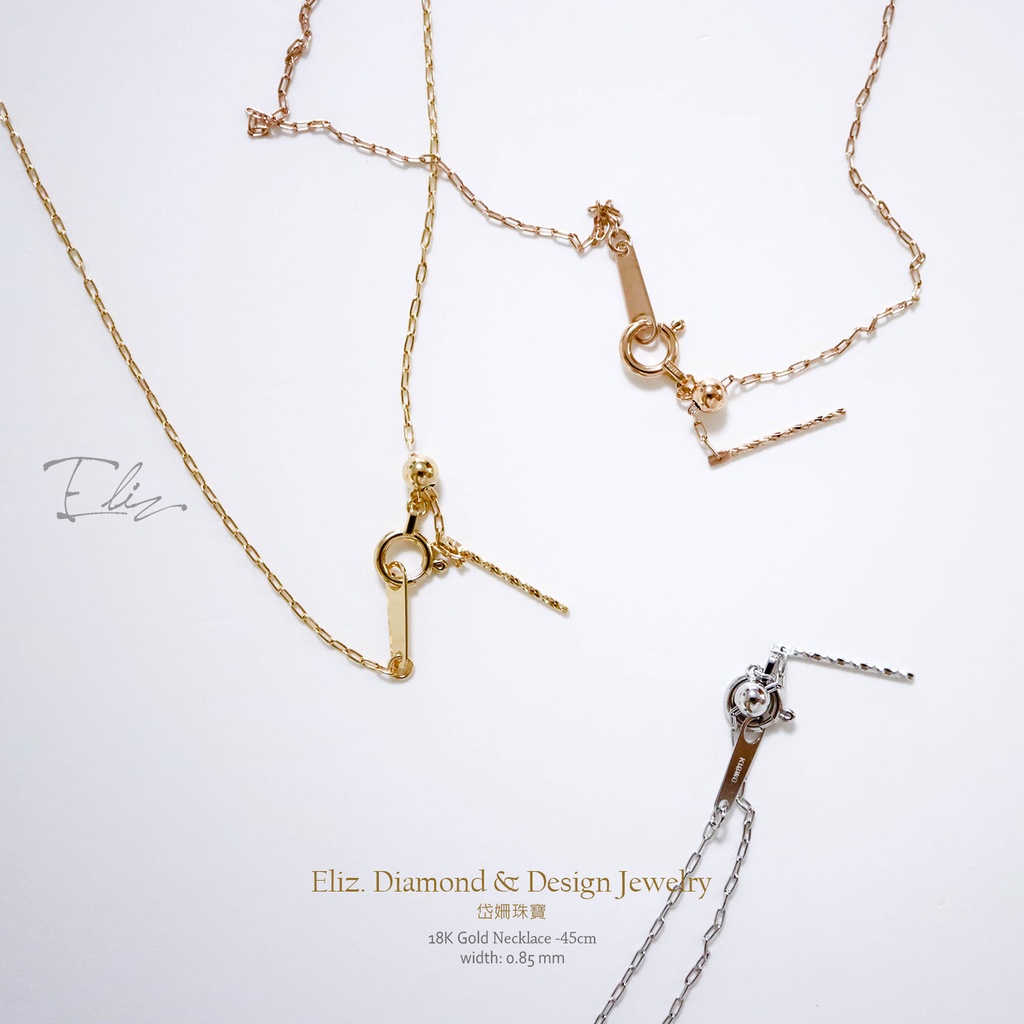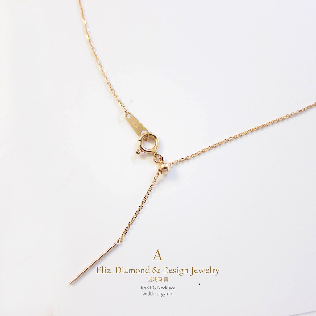 【岱姍珠寶】 正18K金 玫瑰金 白K金 黃K金 裸鏈 裸鍊 伸縮鍊 帶針鍊 (針狀頭) 46cm
