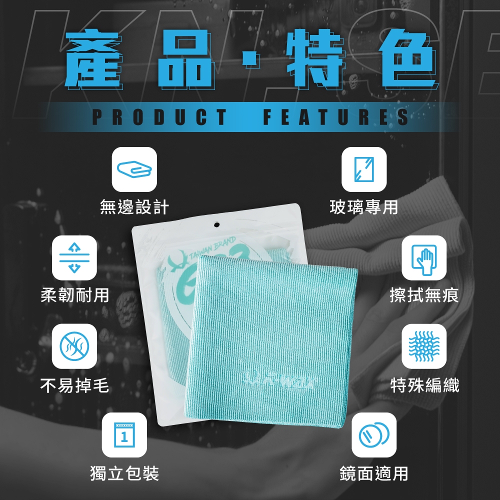 K-WAX G.33玻璃擦拭布 不留水痕 汽車玻璃 居家鏡面 無邊織法 超細纖維 柔軟舒適 400GSM 降細紋 清潔強
