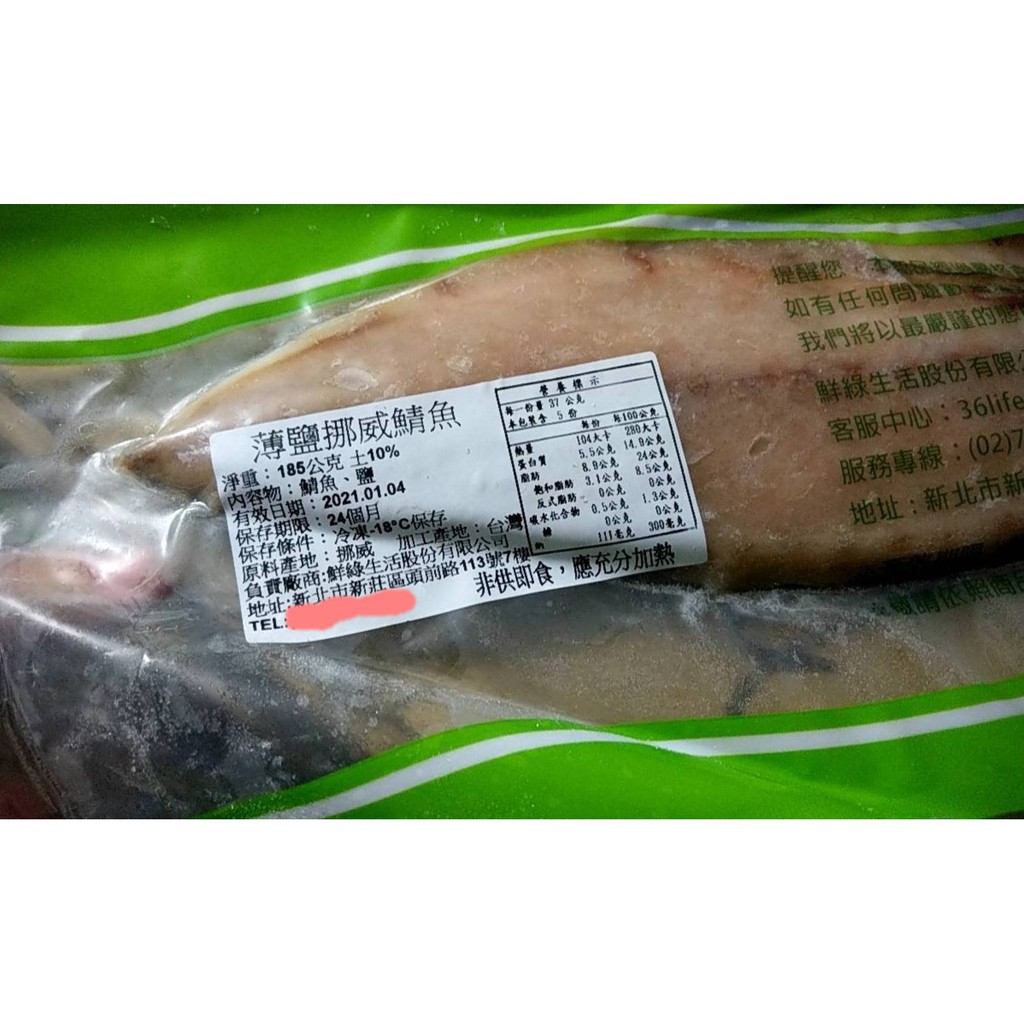【鮮綠生活】挪威薄鹽鯖魚 185g 無紙板