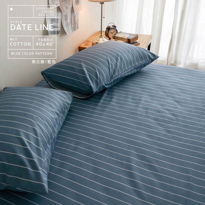 絲薇諾 換日線-藍 100%精梳棉床包枕套組/床包薄被套組(多規格任選) 台灣製
