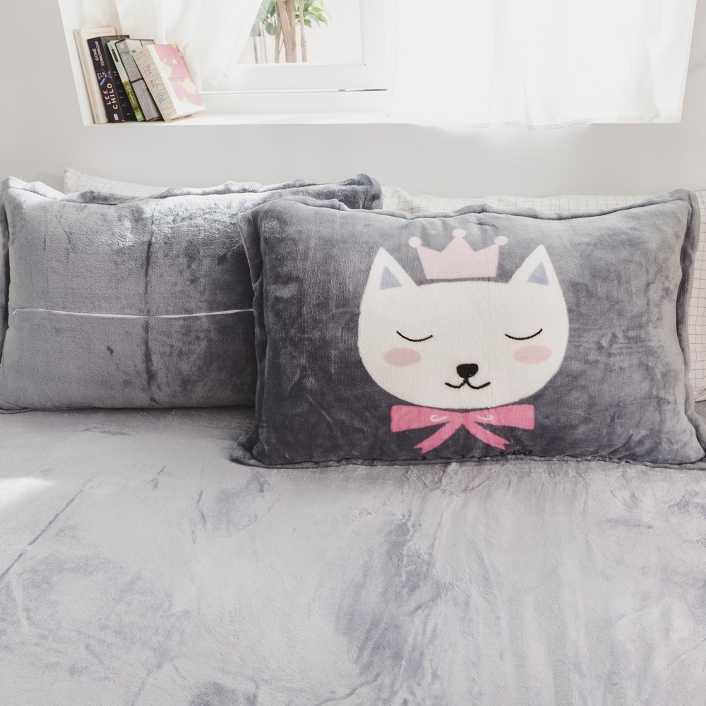 絲薇諾 法蘭絨-鋪棉床包被套組(美喵喵)(雙人/ 雙人加大)