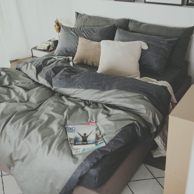 絲薇諾 精梳棉床包薄被套組/(雙人/加大)(艾維斯-黑灰)四件組/台灣製