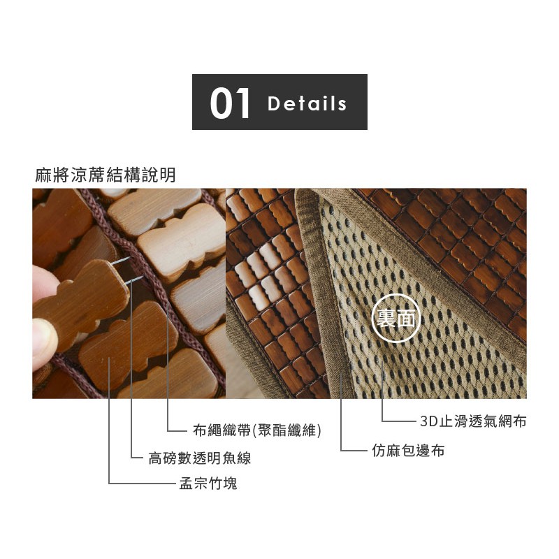 絲薇諾 麻將涼蓆/竹蓆 炭化 (3D透氣包邊止滑款-炭化)-多種尺寸