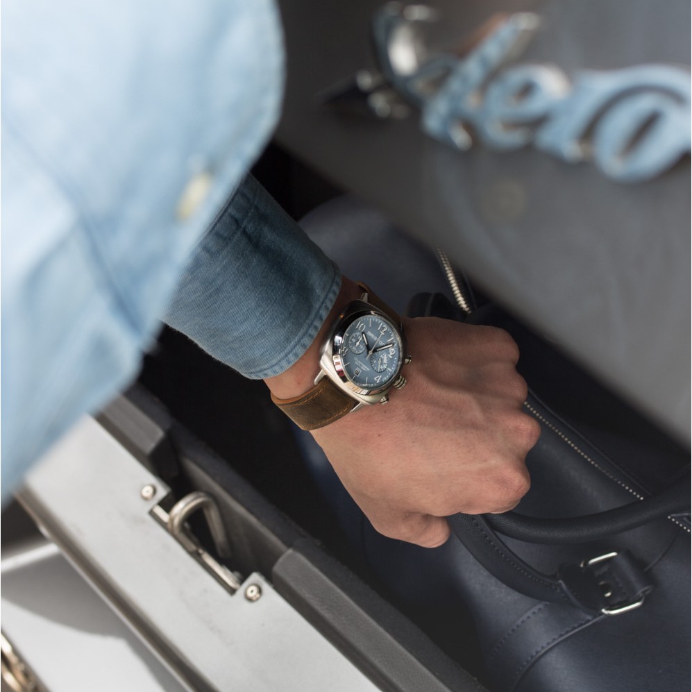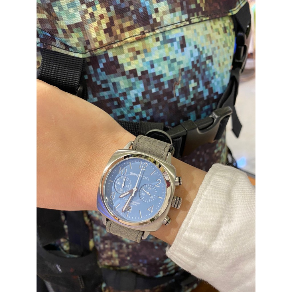 BRISTON 不銹鋼框 雙眼 方糖錶 天藍色 灰色 皮錶帶 百搭實用 商務人士錶 女錶 手錶 男錶 2142