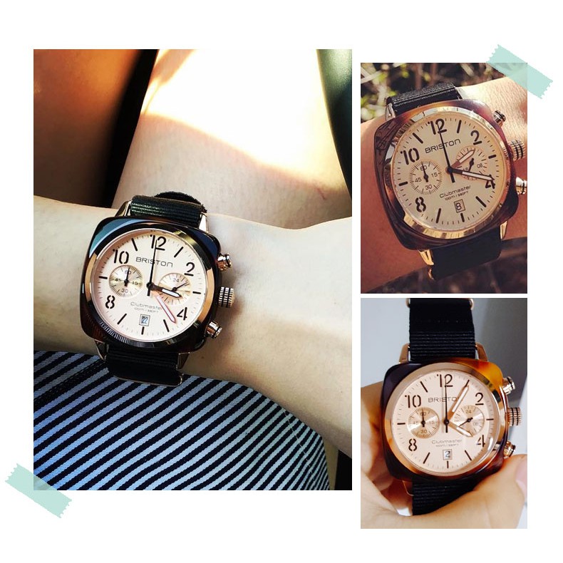 BRISTON 手工方糖錶 折射光感 玫瑰金 玫瑰金框 雙眼 方糖錶 玳瑁琥珀框 時尚百搭 女錶 手錶 男錶 0438
