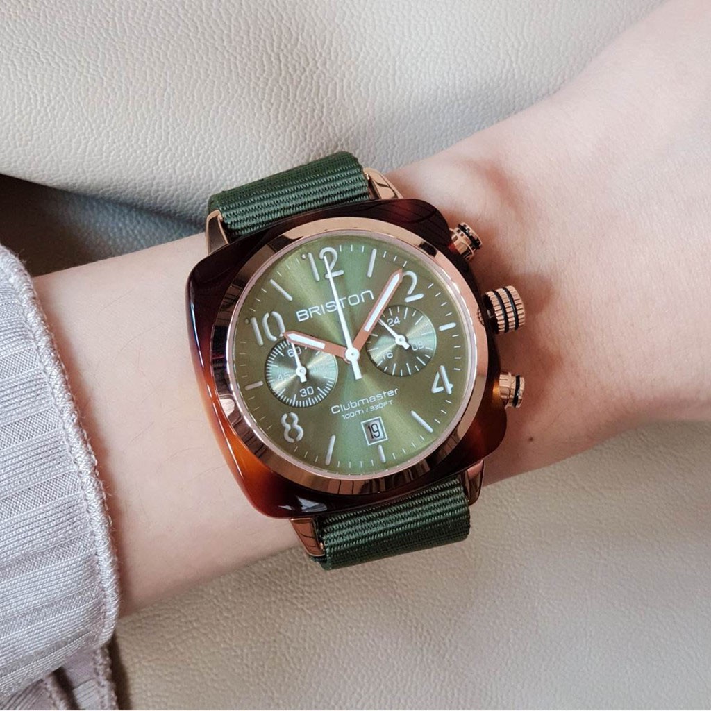 BRISTON 手工方糖錶 玫瑰金框 雙眼 方糖錶 玳瑁琥珀框 彩虹款 折射光感 帆布錶帶 女錶 手錶 男錶 時尚百搭