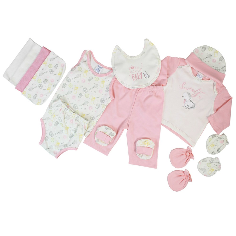 美國Elegant kids彌月禮盒-粉色小鳥13件式禮盒