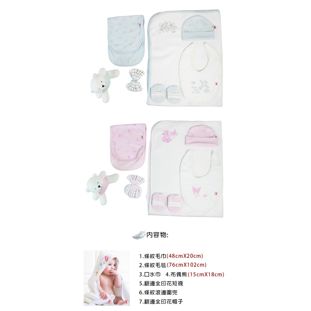美國Elegant kids彌月禮盒-粉色小熊沐浴7件式禮盒