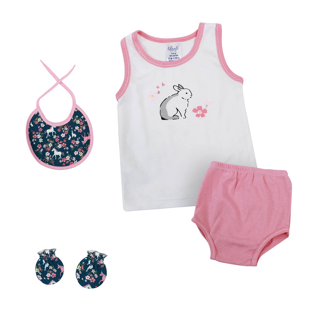 美國Elegant kids-碎花小兔4件式彌月禮盒