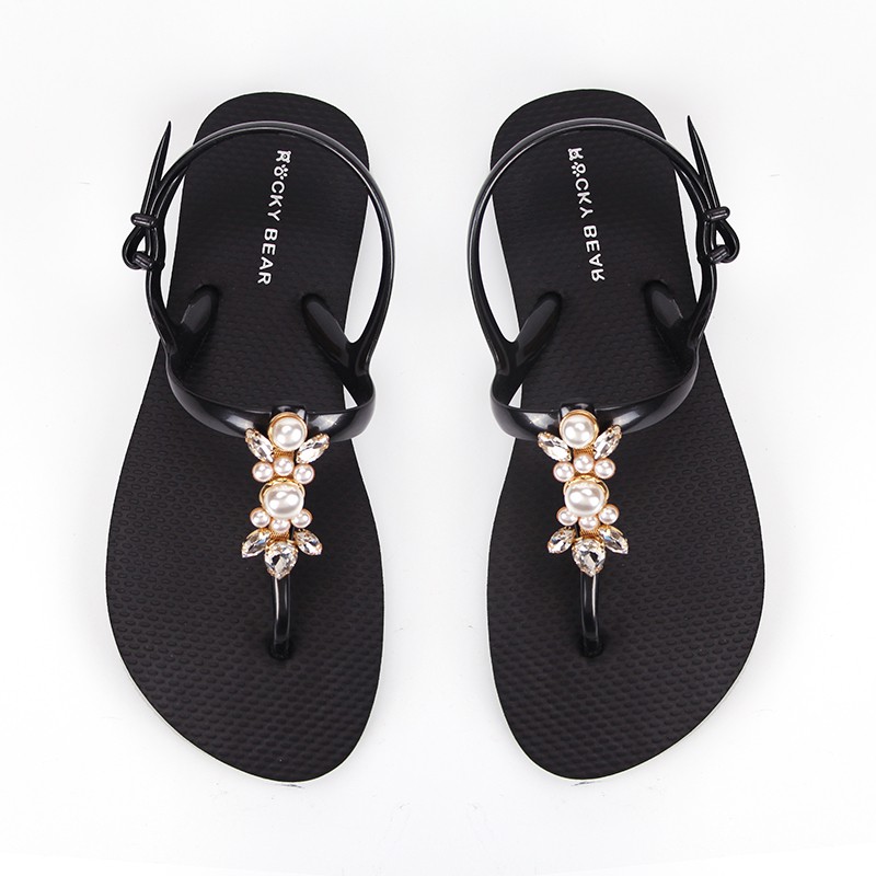 洛克熊簡約優雅珍珠鏈條涼鞋