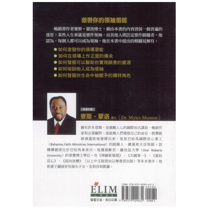 【ELIM 以琳】你也可以成為領袖:發掘你的領袖潛能!│麥斯.蒙洛│以琳書房 ELIM