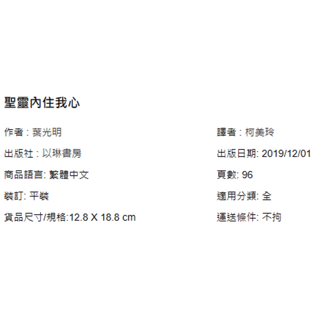 【ELIM 以琳】聖靈內住我心│葉光明│以琳書房 ELIM