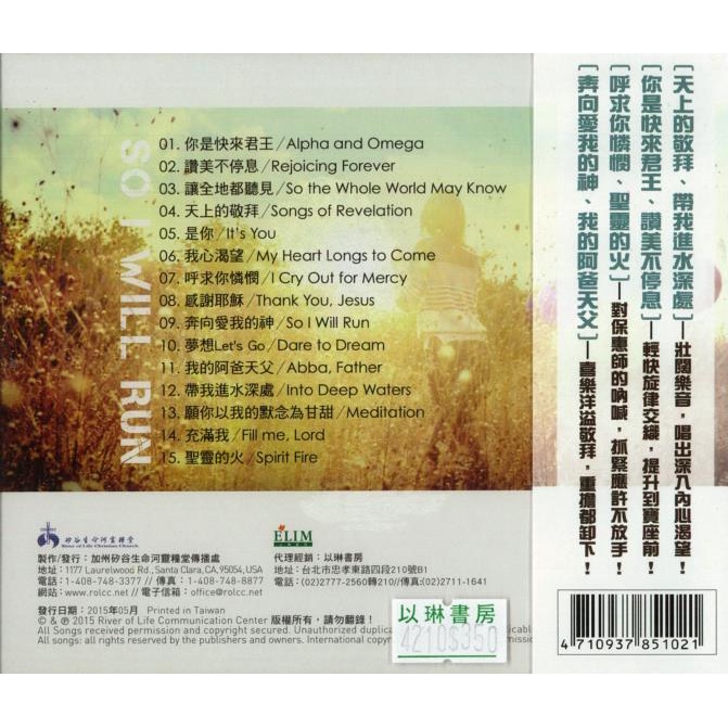 【ELIM以琳】奔向愛我的神.CD.生命河敬拜讚美系列7│生命河靈糧堂.詩歌.敬拜.讚美│以琳書房 ELIM