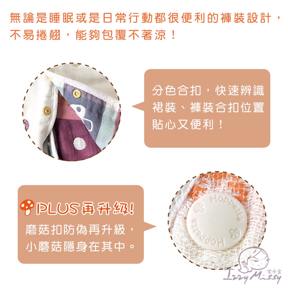 日本Hoppetta六層紗彩色蘑菇成長型睡褲 六層紗睡褲 成長型 嬰幼兒睡衣褲【台灣現貨】