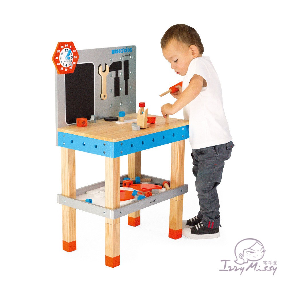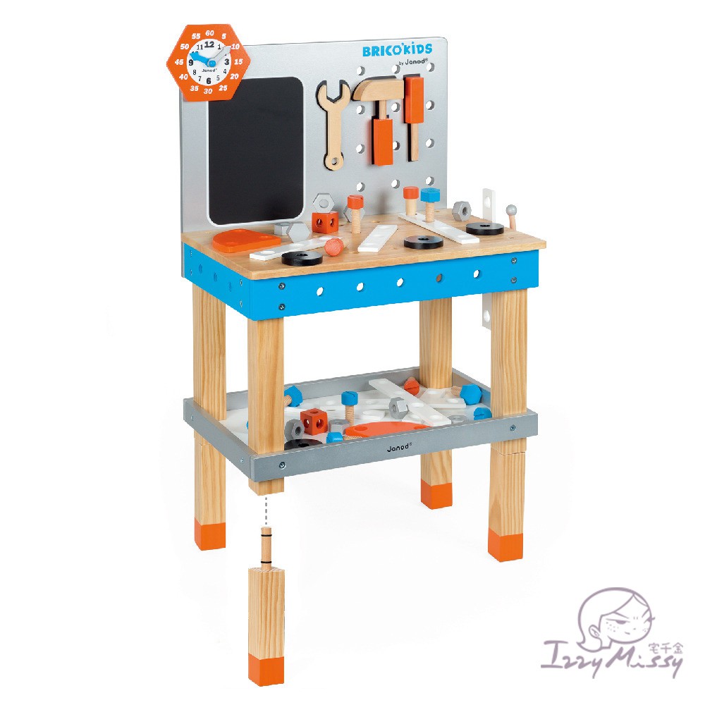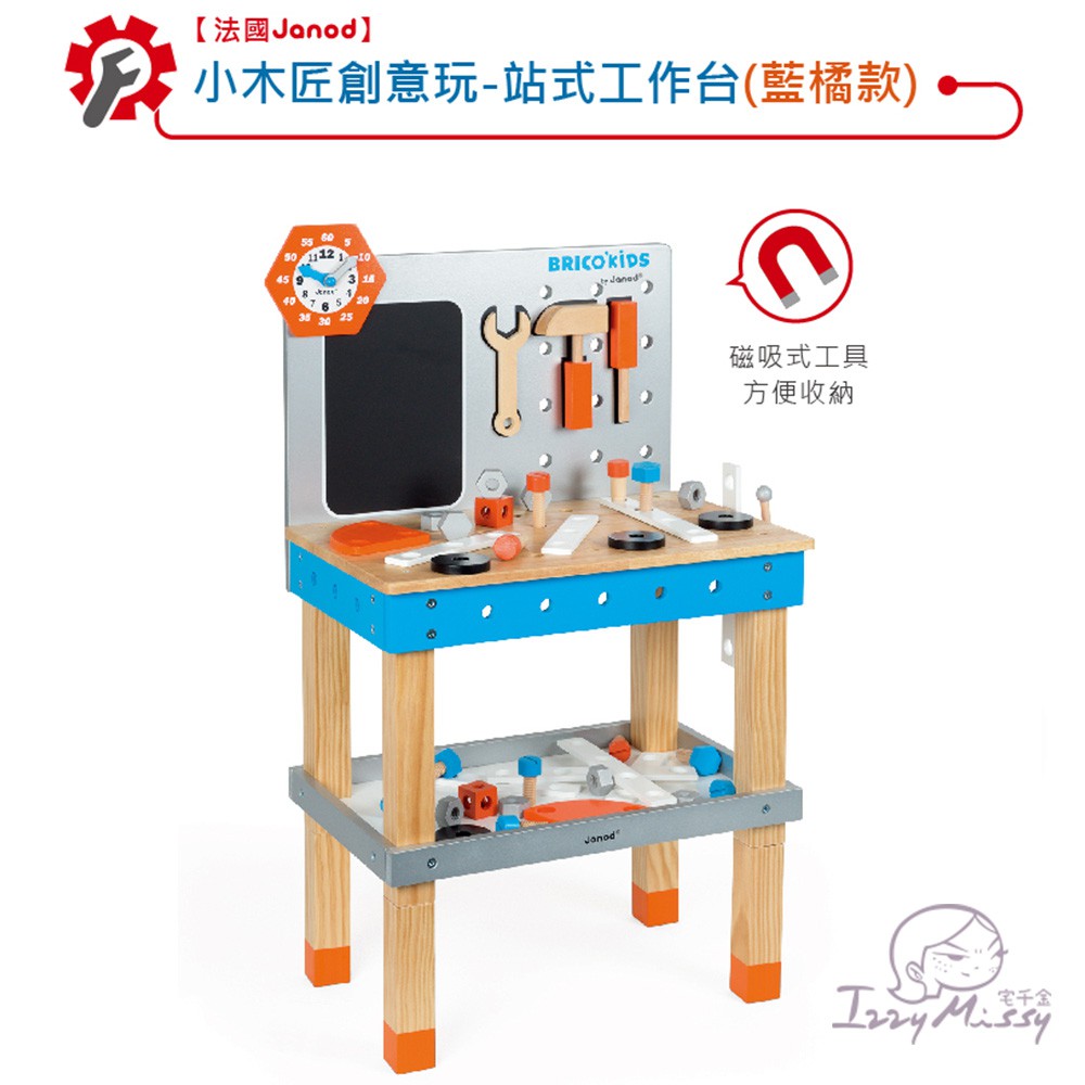 法國Janod-小木匠創意玩-站式工作台-藍橘 操作玩具 扮家家酒遊戲【台灣現貨】