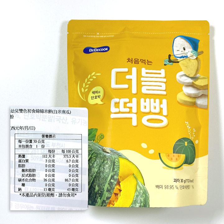 韓國Bebecook寶膳-雙色綿綿米餅(3款口味) 米餅 手指餅乾 磨牙米餅 米棒 幼兒點心 幼兒零食 韓國米餅【現貨】