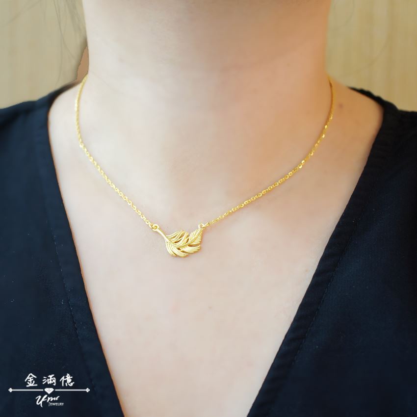 黃金小套鍊【輕飄羽毛】羽毛造型 黃金項鍊 純金金飾