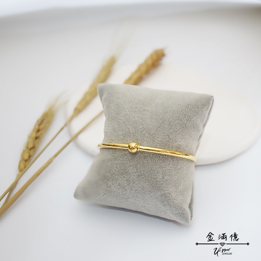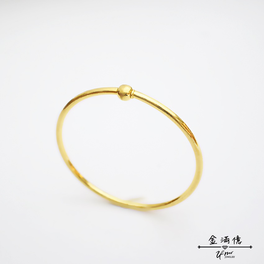 黃金手環【轉轉光珠】開口式 純金女生手環 潘朵拉手環 可串潘朵拉串珠 基本款 簡約 光面手環