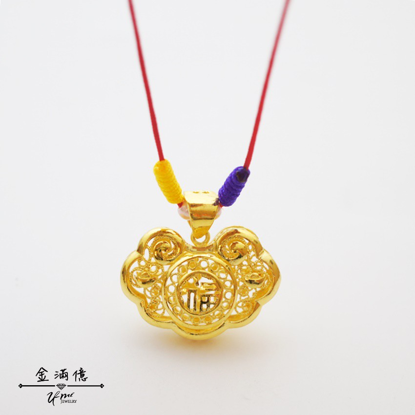 黃金墜飾【古典縷空福鎖片】雙面造型 小朋友純金項鍊 彌月金飾 9999純金金飾