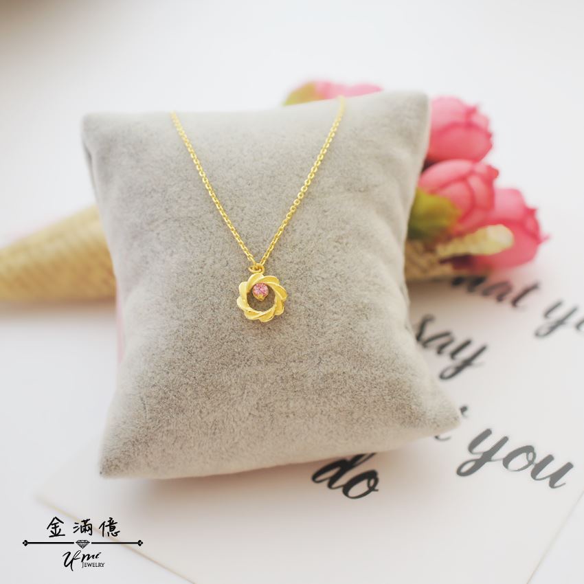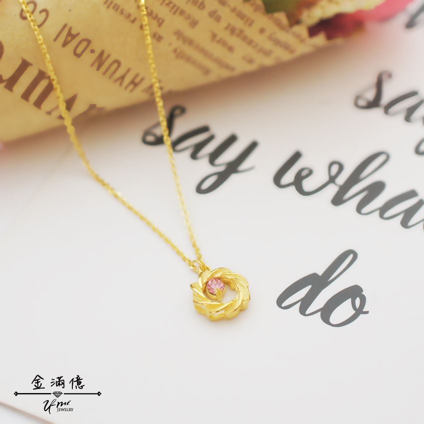 黃金小套鍊【驕陽】太陽 水晶 女生黃金項鍊 純金金飾9999