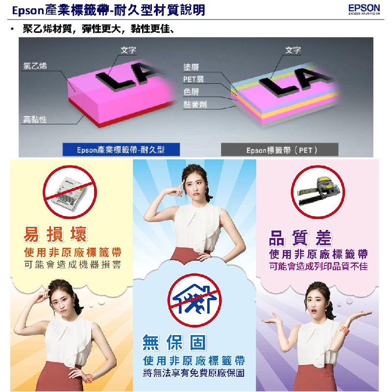 EPSON LK-4WBVN 標籤帶 產業用耐久型 12mm 白底黑字