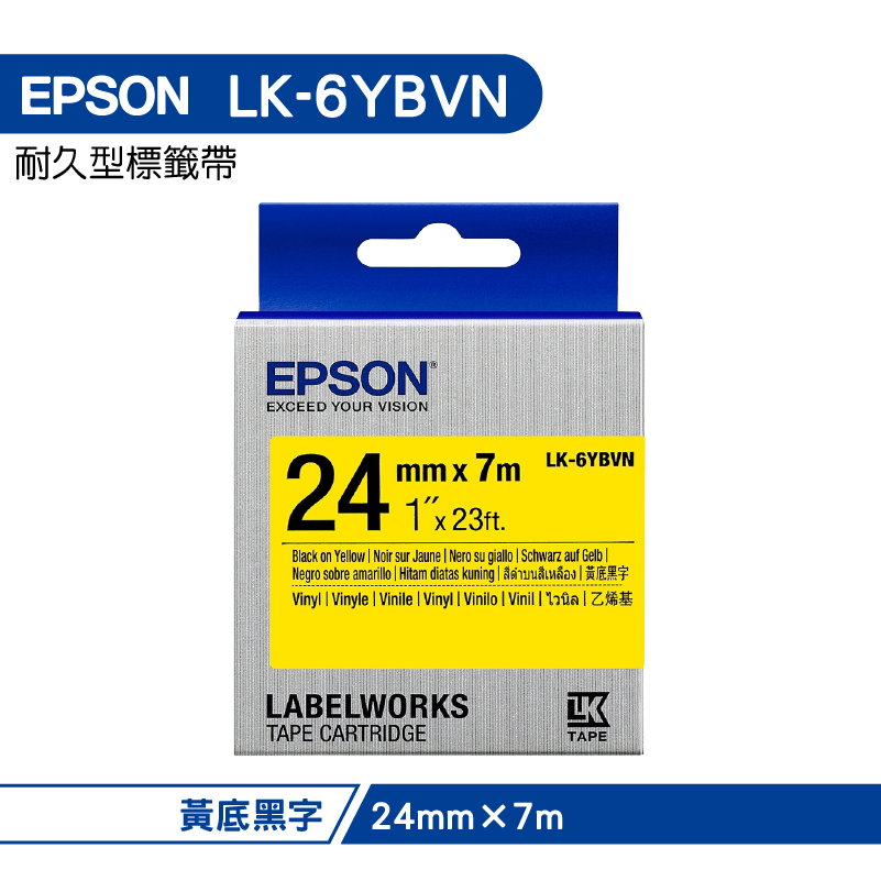 EPSON LK-6YBVN 標籤帶 產業用耐久型 24mm 黃底黑字