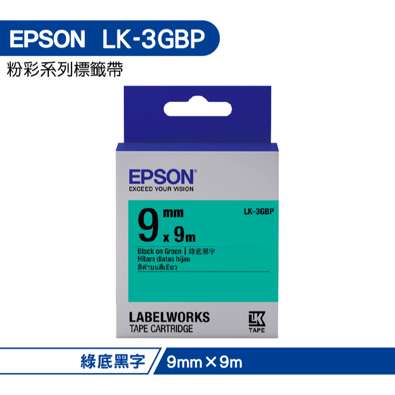 EPSON 愛普生 LK-3GBP C53S653405 粉彩系列綠底黑字標籤帶 9mm