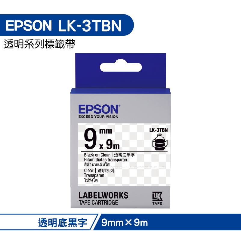 EPSON LK-3TBN C53S653408 透明系列透明底黑字標籤帶 寬度9mm