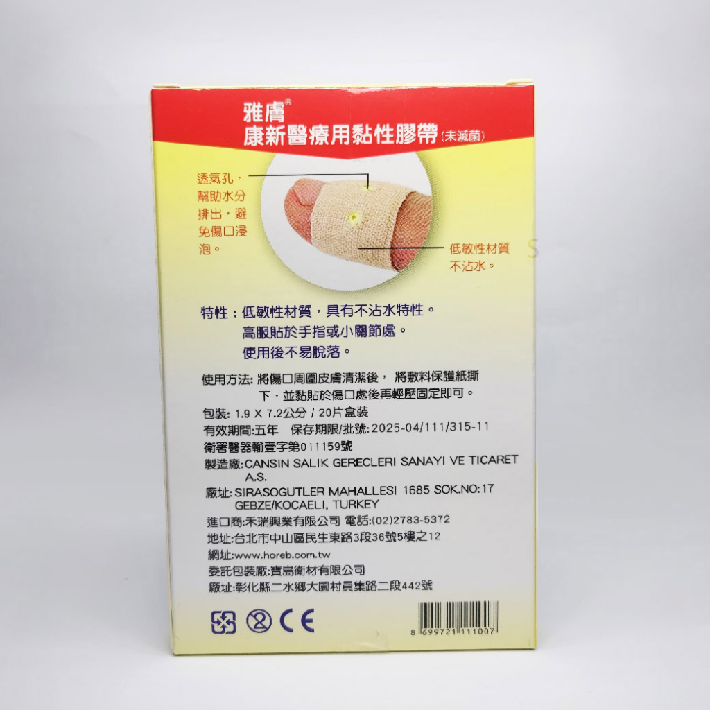 【雅膚】禾瑞醫療用黏性膠帶(未滅菌) 抗水性OK繃-20片裝 春天藥局