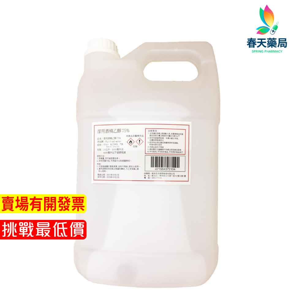 【潔用】75%酒精 (隨機出貨)4000ml-現貨供應 春天藥局